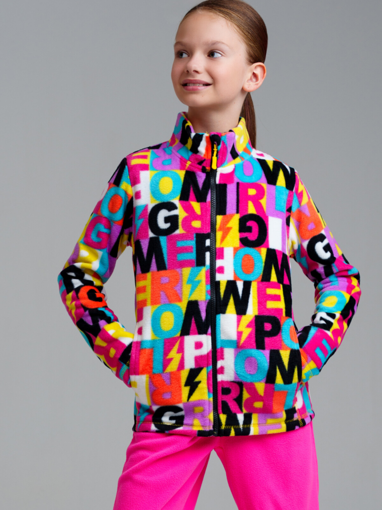 Толстовка из флиса для девочки подростка. Линия NORD ( warm) - идеальный вариант как для повседневной одежды второго слоя в холодное время года, так как для использования в качестве верхней одежды на раннюю осень. Плотность флиса 260 г/м2. Воротник-стойка. Манжеты, горловина и кромка с эластичной окантовкой. Удобная молния. Защитная планка и защита подбородка. Флисовая поддева идеально подходит под зимний мембранный костюм или комбинезон, в качестве второго слоя в трехслойной концепции одежды для зимы. Основная функция поддевы из флиса - удерживать тепло и передавать пар от первого слоя - термобелья, оставаясь сухим. Флис - мягкий, теплый, легкий и неприхотливый материал, способный сохранять тепло и в сухом, и в мокром виде, комфортный и гипоаллергенный.Детские яркие модели из флиса отличаются стильным дизайном и комфортным кроем, который не сковывает движений ребенка. К тому же, они быстро сохнут и легко стираются, что делает их идеальными для повседневного использования в холодное время года.