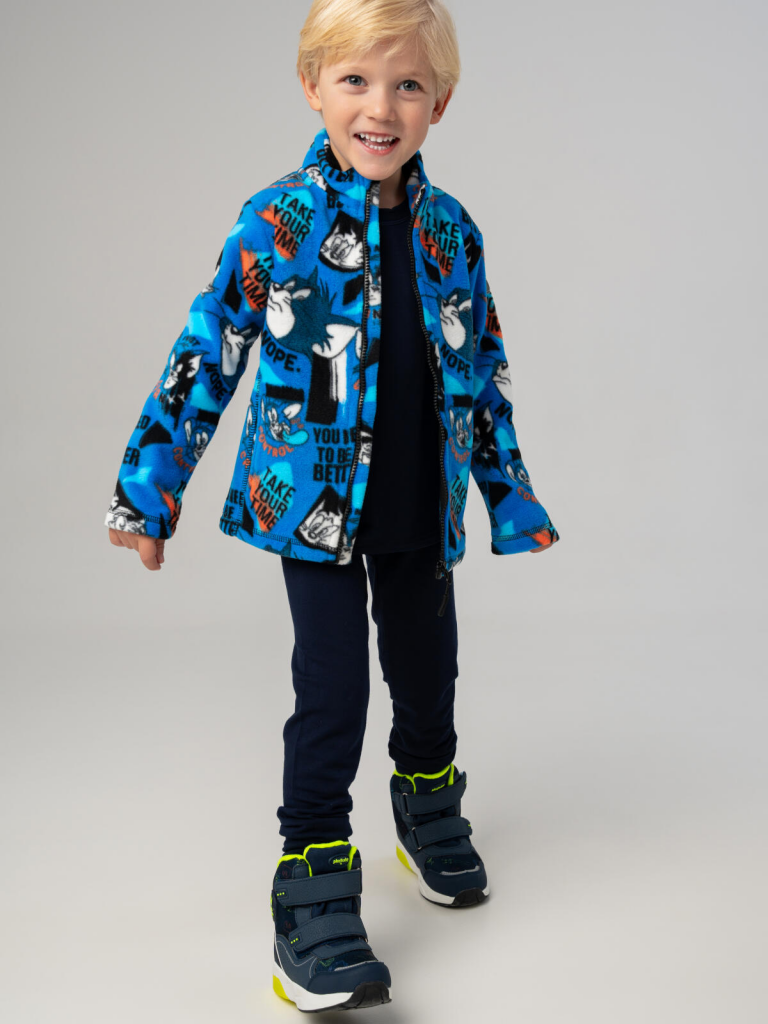 Детская флисовая трикотажная толстовка на молнии для мальчика от PlayToday — универсальный вариант для прохладных дней, сочетающий тепло, комфорт и свободу движений.Преимущества модели:+ флис с начёсом (260 г/м2) — тёплый, мягкий, не сковывает движений+ два удобных кармана — для мелочей и согрева рук+ лёгкая и комфортная в носке — ребёнку удобно активно двигатьсяМодель выполнена из флиса линии WARM с плотностью 260 г/м2 и мягким начёсом на внутренней стороне — это идеальный утеплённый слой на каждый день.Эта детская флисовая кофта на молнии — практичный и тёплый выбор для повседневных прогулок, детского сада и активных игр на свежем воздухе. Подходит как флисовая куртка для мальчика, утеплённая кофта на замке или средний слой под зимнюю одежду.Благодаря дышащему материалу и базовому дизайну, флисовая куртка для мальчика легко комбинируется с джинсами, брюками или спортивными штанами. Актуальна для сезона осень-весна, а также как утеплённая поддева зимой.Советы по стилю:Носите с джоггерами, утеплёнными штанами или спортивными комплектами. Отлично сочетается с демисезонной курткой, жилетом или дождевиком. Добавьте шапку-бини или бафф — и образ для прохладной погоды готов.размерный ряд: модель представлена на рост 98-122 см — для мальчиков 3-7 лет.