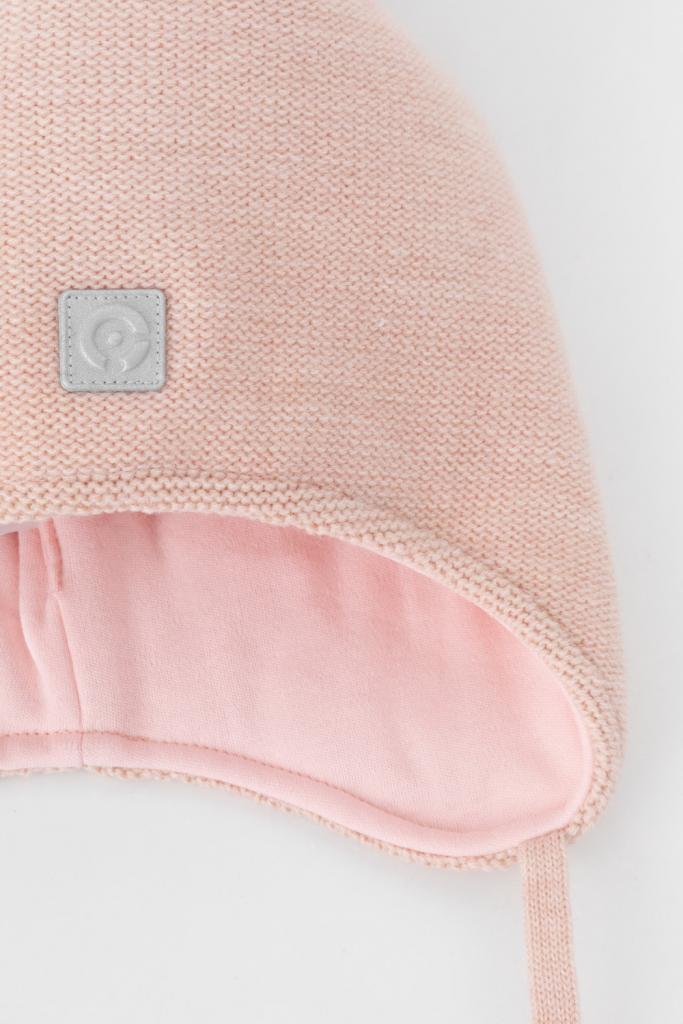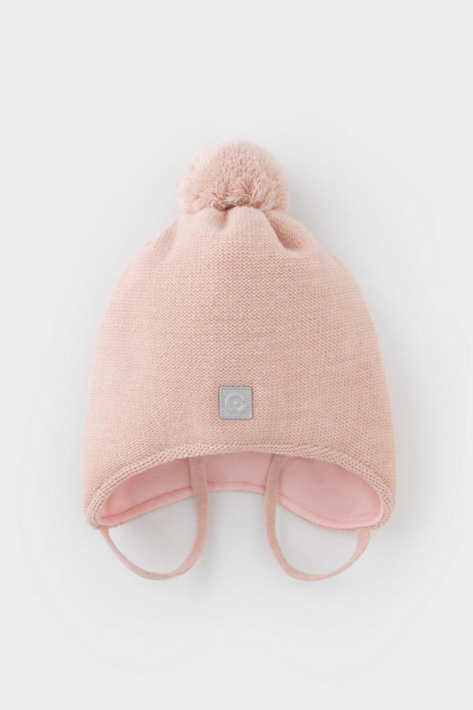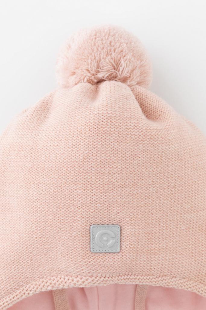 Шапка для девочки из полушерсти на завязках с синтепоновым утеплителем. Подклад из натурального хлопка. Полностью закрывает голову, уши и шею, защищая ребёнка от холодного воздуха и ветра. На макушке помпон. Изделие сохраняет форму и стойкий цвет после многочисленных стирок.