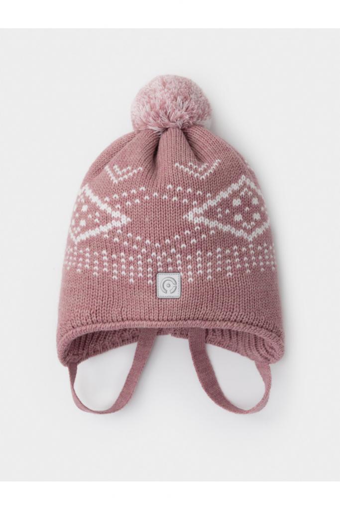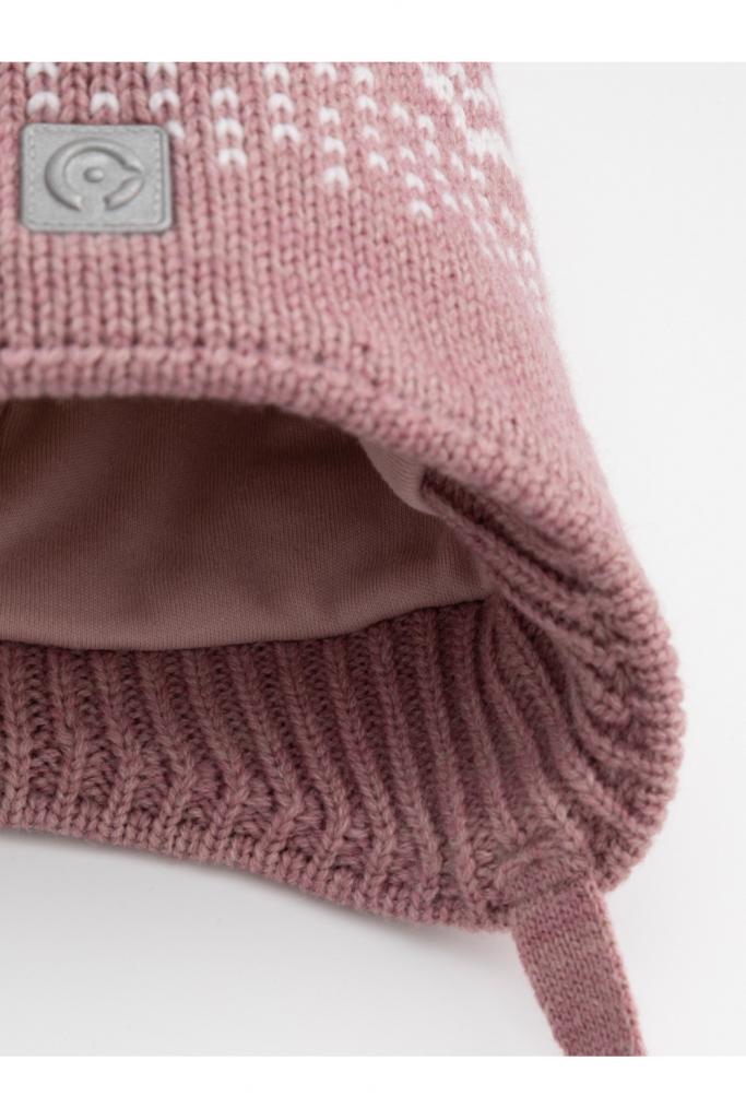 Шапка из полушерсти на завязках с синтепоновым утеплителем. Подклад из натурального хлопка. Полностью закрывает голову, уши и шею, защищая ребёнка от холодного воздуха и ветра. На макушке помпон. Изделие сохраняет форму и стойкий цвет после многочисленных стирок.