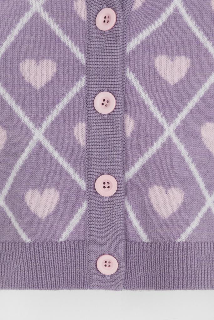Вязаный кардиган для девочки из мягкой полушерстяной пряжи. Застёгивается на пуговицы. Длинные рукава с манжетами. Внизу эластичный пояс. Изделие сохраняет форму и стойкий цвет после многочисленных стирок.