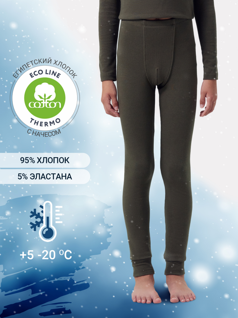 Теплые легинсы для мальчиков из линейки Eco Line. Модель зимнего термобелья из египетского хлопка. Необходимая вещь в гардеробе ребенка для холодного времени года. Мягкий экологичный материал - безопасный и гипоаллергенный. Внутри - ворсистая изнанка, которая отлично сохраняет тепло и позволяет коже дышать. Легинсы тонкие и эластичные, с плоскими комфортными швами. Хорошо тянутся и не стесняют движений, комфортно облегают и не заметны под повседневной одеждой. Это позволяет использовать их не только как спортивное термо бельё, но и как базовый нательный первый слой на каждый день. Предназначены для средней физической активности и прохладной погоды.