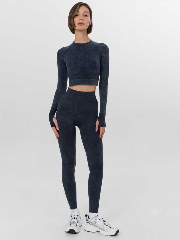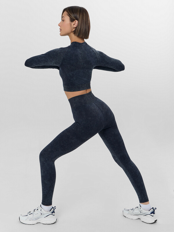 Серые женские леггинсы визуально корректируют силуэт, мягко подчеркивая талию и линию бедер. Модель с высокой посадкой обеспечивает комфортную поддержку, а специальный крой шва на ягодицах подчеркивает естественную красоту фигуры. Эластичный материал плотно облегает фигуру, сохраняя полную свободу движений.