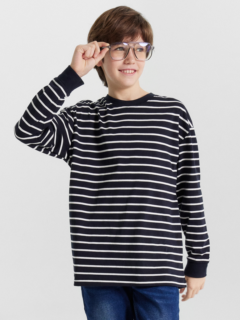 Детский лонгслив для мальчиков свободного силуэта из высококачественного хлопка. Горловина круглой формы из рибаны. Плечо спущено, пройма углублена. Рукав втачной, длинный. По низу рукава отрезные манжеты из рибаны. Такая модель прекрасно сочетается с джинсами, спортивными брюками или шортами, создавая стильный и уютный образ. Лонгсливы для мальчиков подойдут для повседневных прогулок или активного отдыха на природе. Идеально подобранный лонг поможет мальчику чувствовать себя уверенно и комфортно в любой ситуации. Широкий размерный ряд. Рекомендуем!