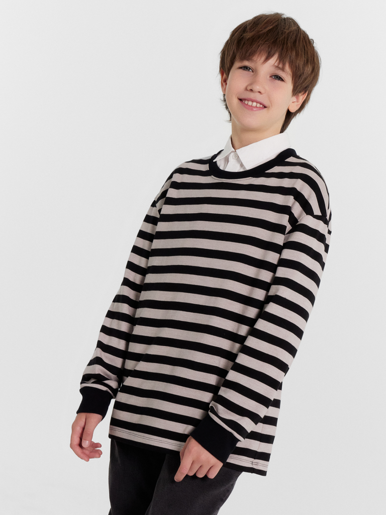 Детский лонгслив для мальчиков свободного силуэта из высококачественного хлопка. Горловина круглой формы из рибаны. Плечо спущено, пройма углублена. Рукав втачной, длинный. По низу рукава отрезные манжеты из рибаны. Такая модель прекрасно сочетается с джинсами, спортивными брюками или шортами, создавая стильный и уютный образ. Лонгсливы для мальчиков подойдут для повседневных прогулок или активного отдыха на природе. Идеально подобранный лонг поможет мальчику чувствовать себя уверенно и комфортно в любой ситуации. Широкий размерный ряд. Рекомендуем!