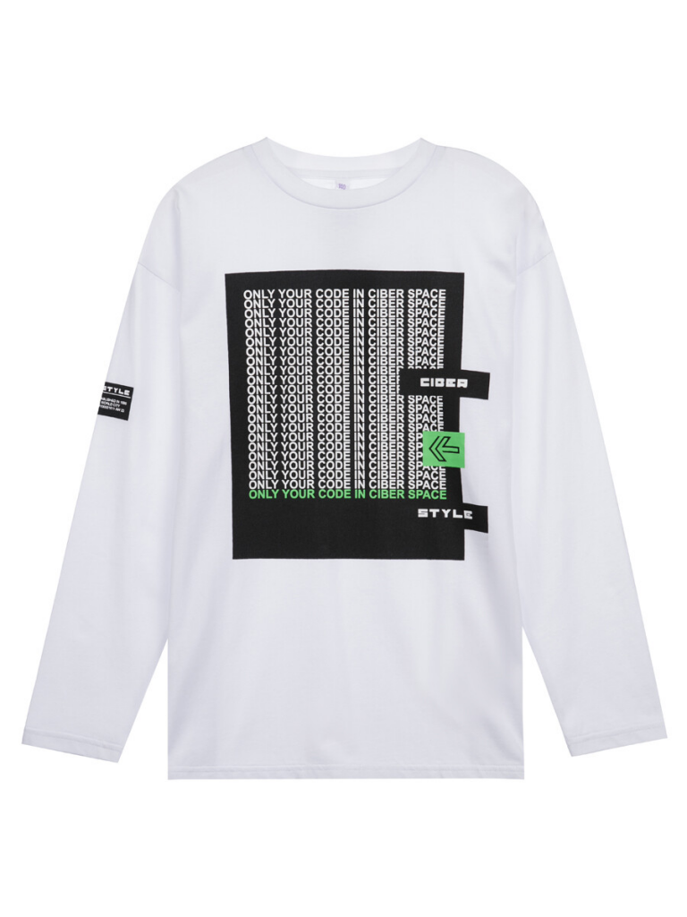 Лонгслив из качественного и приятного на ощупь трикотажа джерси. Высокое содержание хлопка 95%. Благодаря наличию эластана в составе ткани, изделие проще в уходе и держит форму. Принт сохраняет первоначальный вид даже после многочисленных стирок.