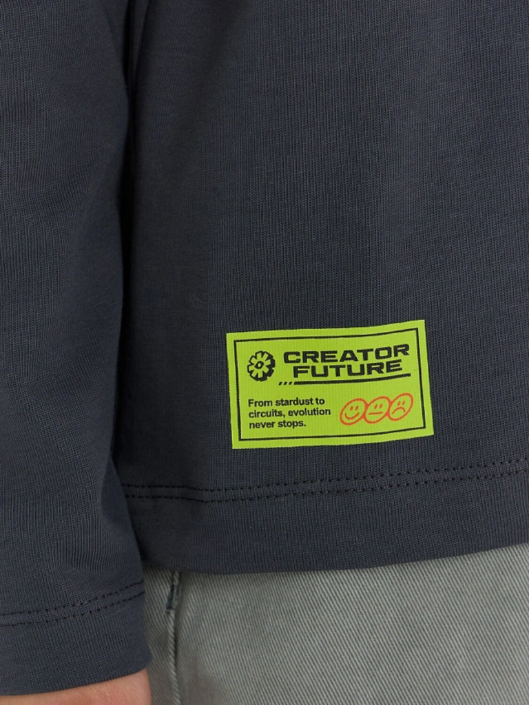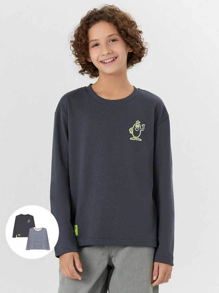 Лонгслив графит +молочно -шалфейная полоска