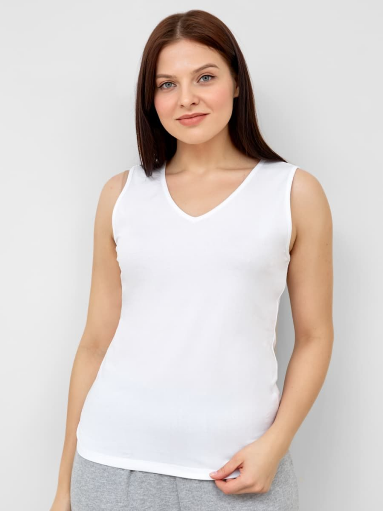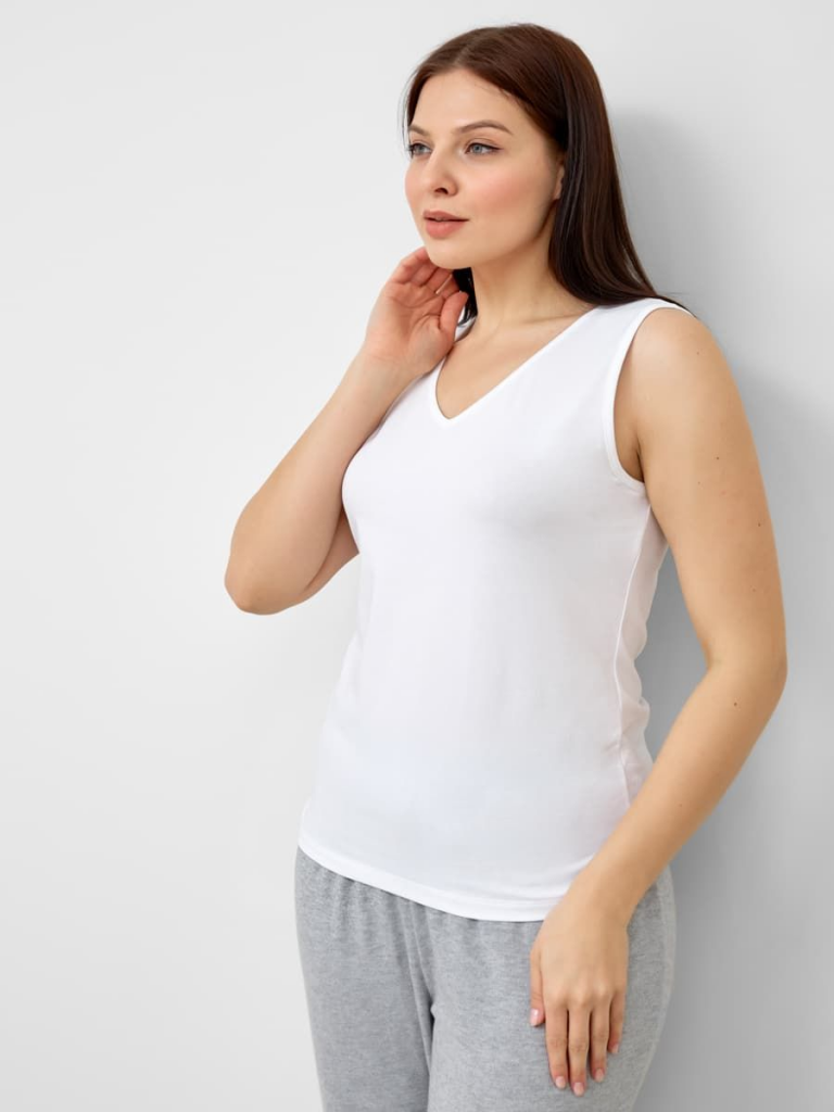 Женская бельевая майка прилегающего силуэта с V-образным вырезом горловины обеспечивает идеальное сочетание комфорта и элегантности. Модель выполнена из хлопковой кулирки, которая отличается своей мягкостью и гипоаллергенными свойствами. Натуральный материал позволяет коже дышать, что предотвращает перегрев и раздражения. Эта майка станет незаменимой в вашем гардеробе, даря ощущение свежести и комфорта в течение всего дня.