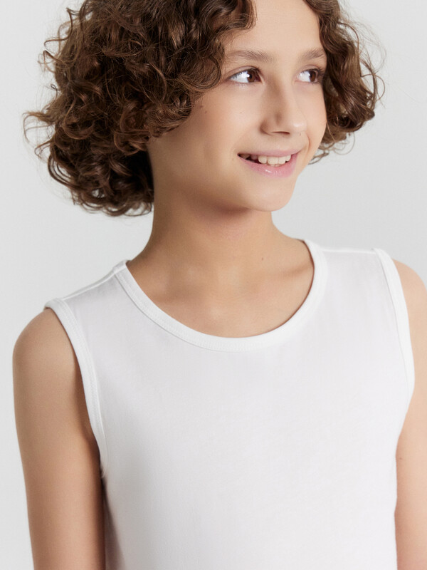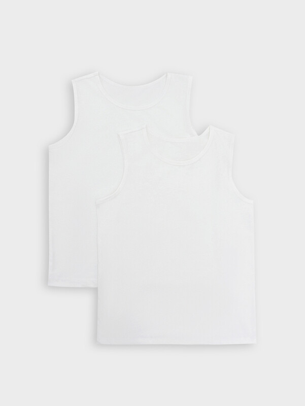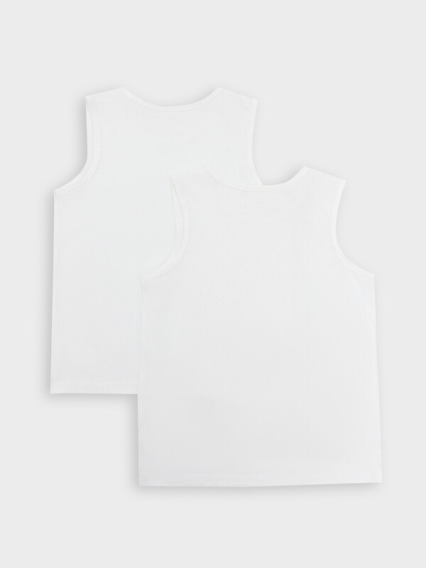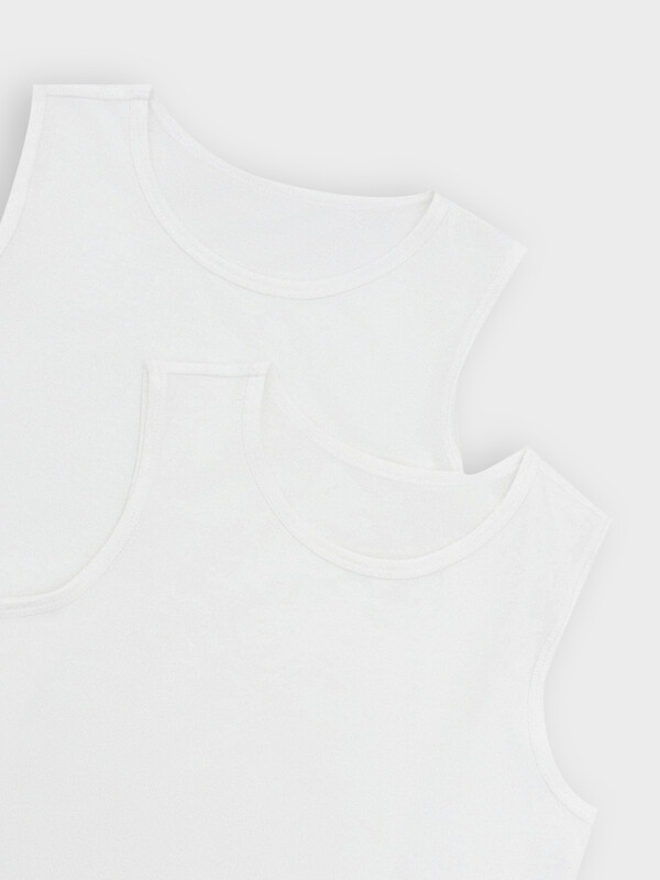 Набор из двух маек полуприлегающего силуэта из хлопковой трикотажной кулирки. Длина до середины бедер. Горловина круглая, окантована мягкой бейкой. Нижний срез обработан плоским швом. Комфортная классика для вашего мальчика!