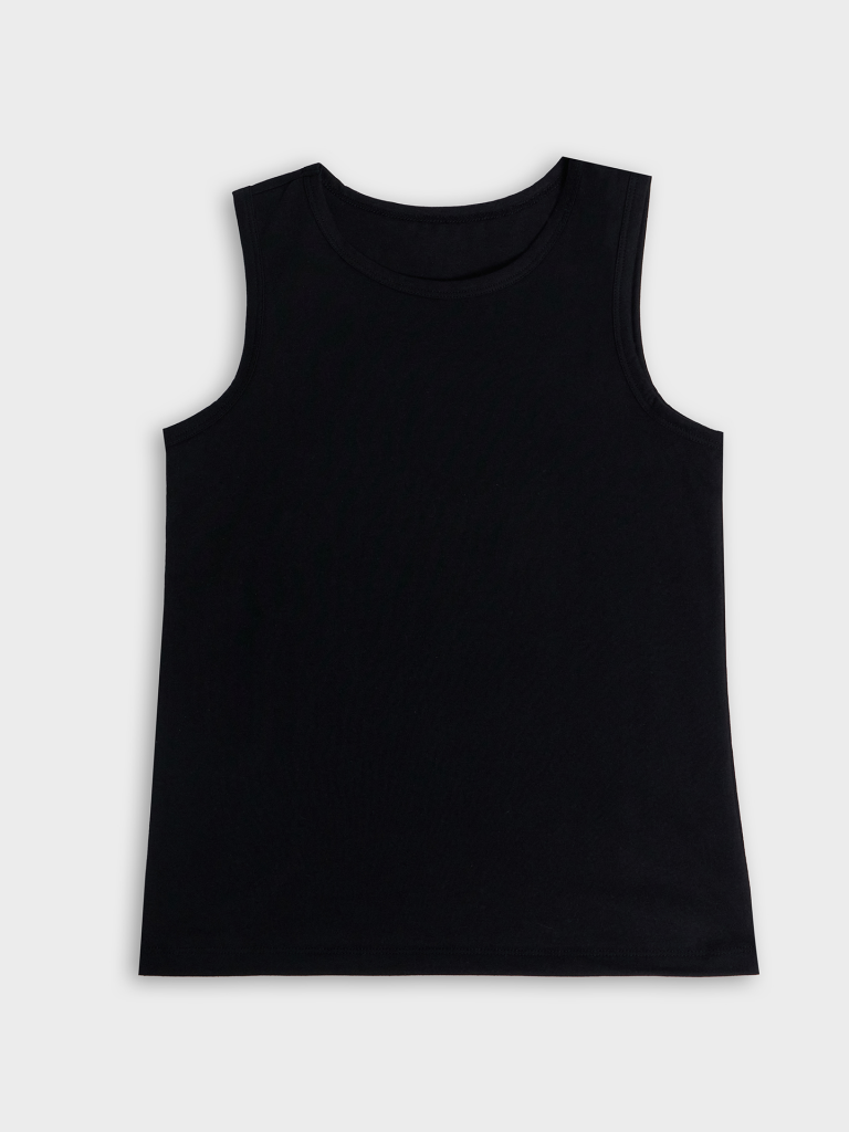 Майка полуприлегающего силуэта из хлопковой трикотажной кулирки. Длина до середины бедер. Горловина круглая, окантована мягкой бейкой. Нижний срез обработан плоским швом. Комфортная классика для вашего мальчика!