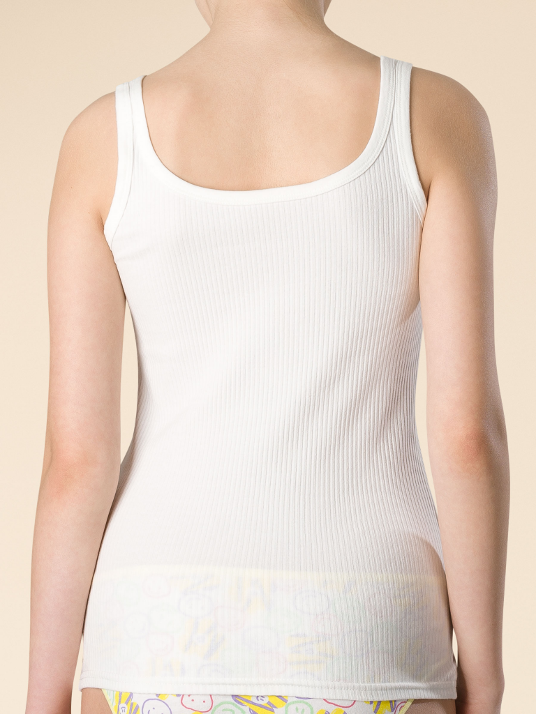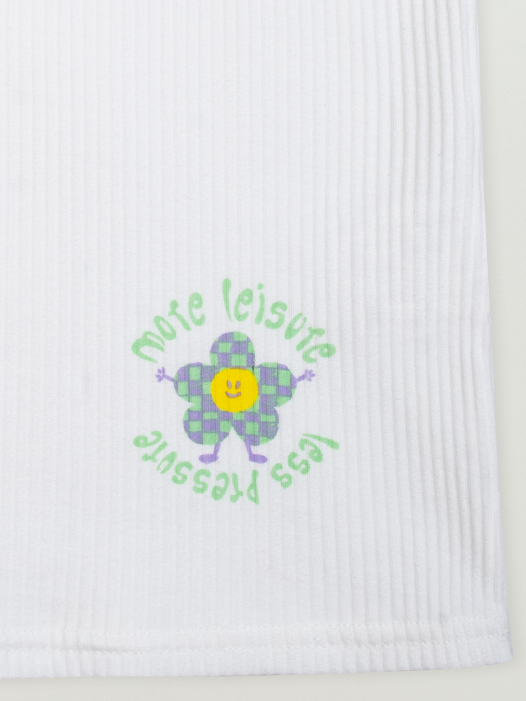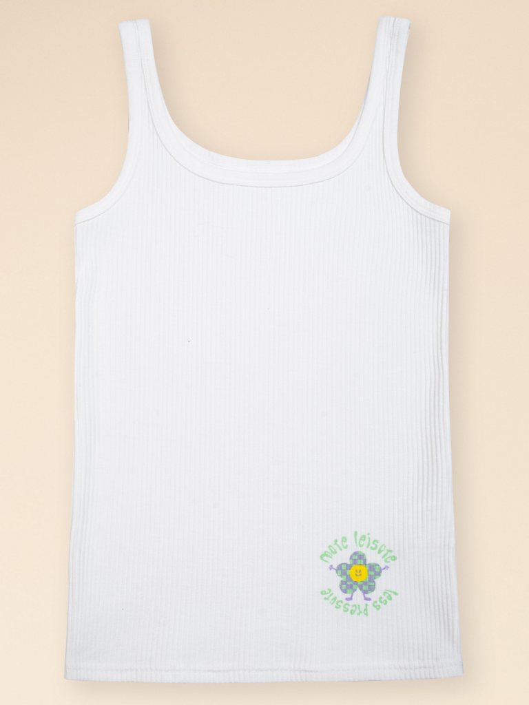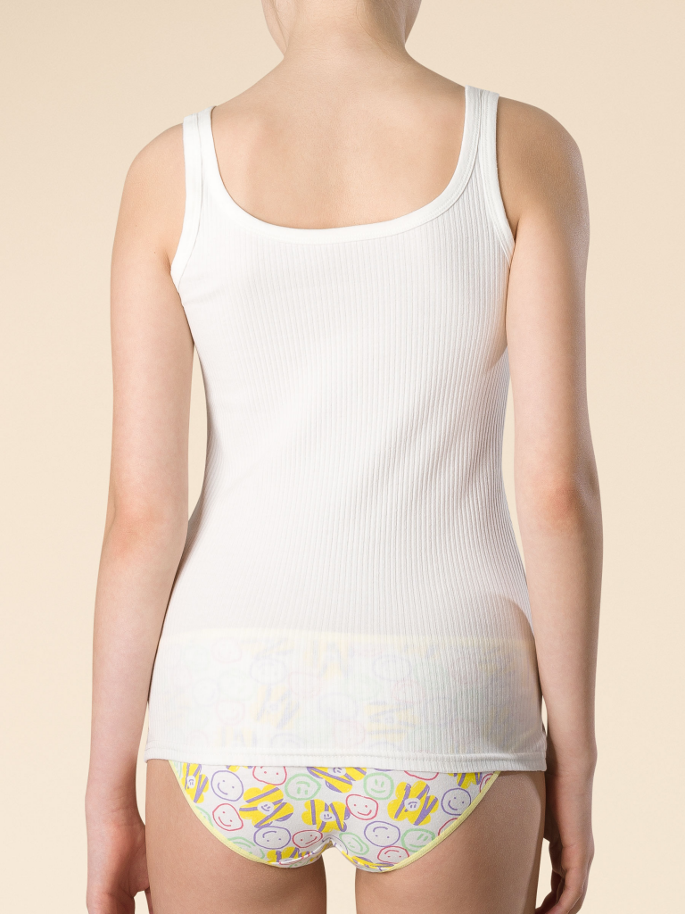 Если вы находитесь в поисках красивого и комфортного белья для своей дочки, обратите внимание на нашу изящную майку из модной ткани в рубчик для девочки. Модель выполнена из кашкорсе с высоким содержанием хлопка — изделие мягкое, воздухопроницаемое, кожа ребёнка дышит. Эластан в составе помогает майке сохранять великолепную форму, даже при частых стирках. Горловина и проймы обработаны эластичным пайпингом в тон — они не растягиваются, остаются в первозданном виде долго. Модель комфортно сидит по фигуре, подходит для носки под блузкой, джемпером, платьем. Изделие представлено в двух цветах. Классический белый вариант универсален, его можно надеть под белую блузку. Интересный бледно-желтый смотрится очень нежно и понравится любой девочке. Майку украшает забавный принт с позитивной надписью. Перевод принта: "Больше досуга, меньше давления". Принт мягкий и стойкий, замечательно переносит стирки. Отличный выбор для повседневной носки, сна, отдыха. Станет замечательным подарком, который способен вызвать искреннюю