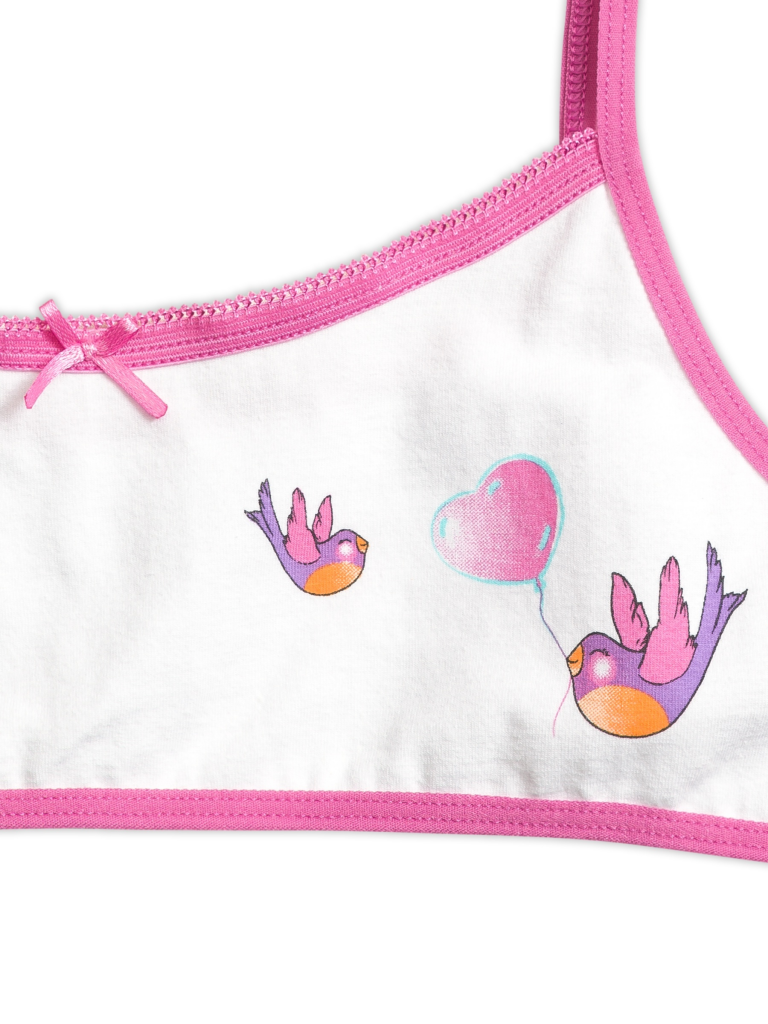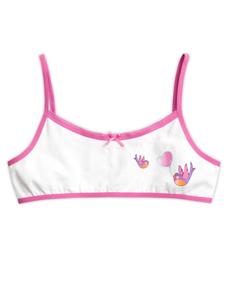 Топ для девочек на тонких бретелях из эластика. Горловина декорирована эластиком с фестонным краем и атласным бантиком. По низу изделия и проймам эластик.