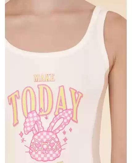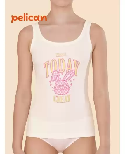 Майка детская для девочки в модном стиле преппи. Нательная майка для девочки выполнена из ткани с высоким содержанием хлопка — она приятна на ощупь, гипоаллергенна и великолепно пропускает воздух. Эластан помогает изделию сохранять отличную форму в течение длительного времени. Качественная ткань и правильный крой гарантируют комфортную посадку. Горловина и проймы обработаны эластичным пайпингом в тон — они не растягиваются и надолго сохраняют прекрасный внешний вид. Хлопковая майка белого цвета (нежный молочный оттенок) подойдёт любой девочке. Красивая майка декорирована позитивным принтом в виде зайчика в очках, надпись переводится: «сделай сегодняшний день отличным». Принт мягкий и устойчивый, отлично переносит стирки. Майка детская для девочек — идеальный выбор для повседневной носки под одеждой, а также она подходит для летнего отдыха и в качестве домашней одежды. Помните о правильном уходе за изделием: рекомендуется стирать при температуре не выше 30 °C, без предварительного замачивания, с изнанки. Это поможет сохранить качество и цвет майки на длительное время. Не забывайте о выборе правильного размера. Используйте таблицу размеров на фотографии, чтобы выбрать подходящий вариант для вашей девочки. Обратите внимание, что цвет товара на экране вашего устройства может отличаться от реального.