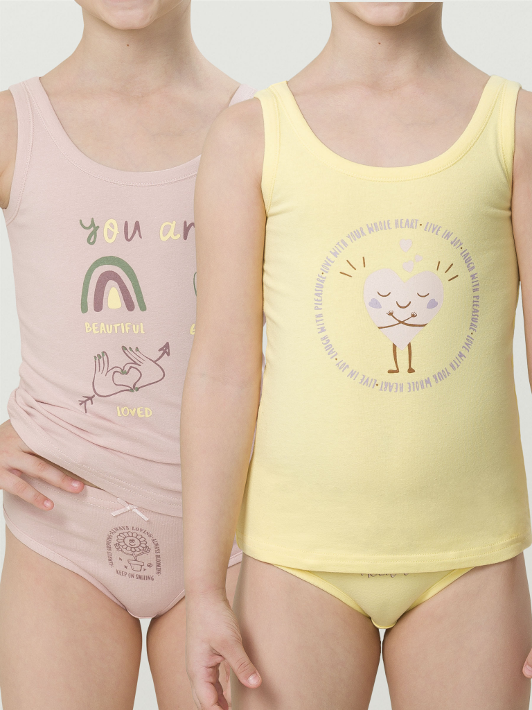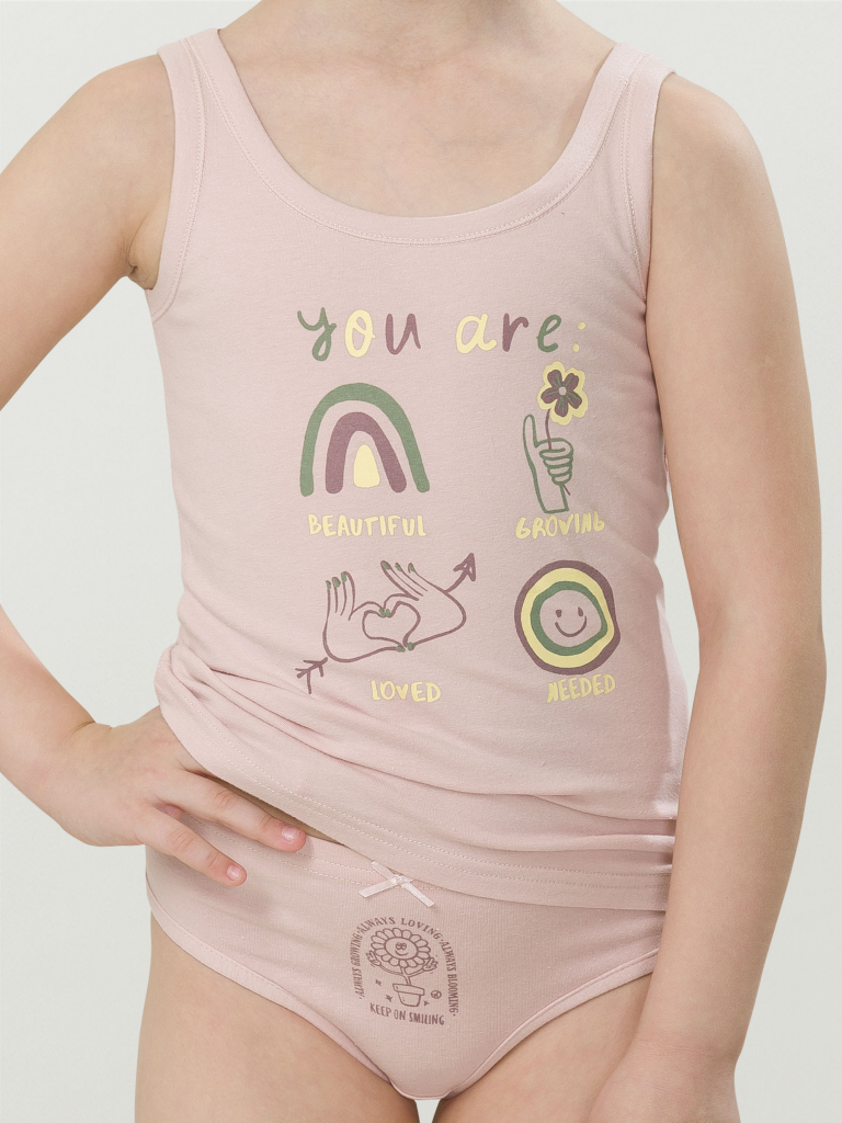 Детский нательный бельевой майка топ на бретелях для девочки. Качественный материал и пошив, аккуратные швы, которые не доставят дискомфорт для ребенка. Майка на широких бретельках идеально впишется в гардероб девочек как детское нижнее белье и как базовый топик, который удобно надевать под одежду. Удобная и практичная модель топа на лямках для детей подходит для повседневной носки дома, как одежда для сна, в детский сад, для занятия спортом.