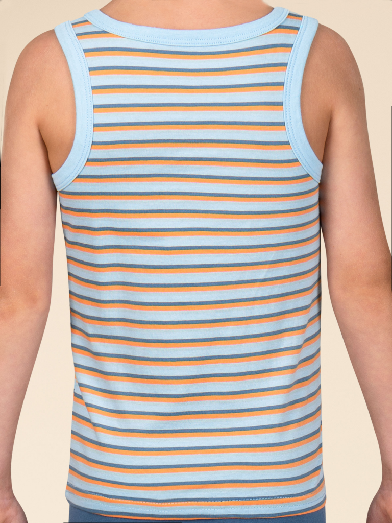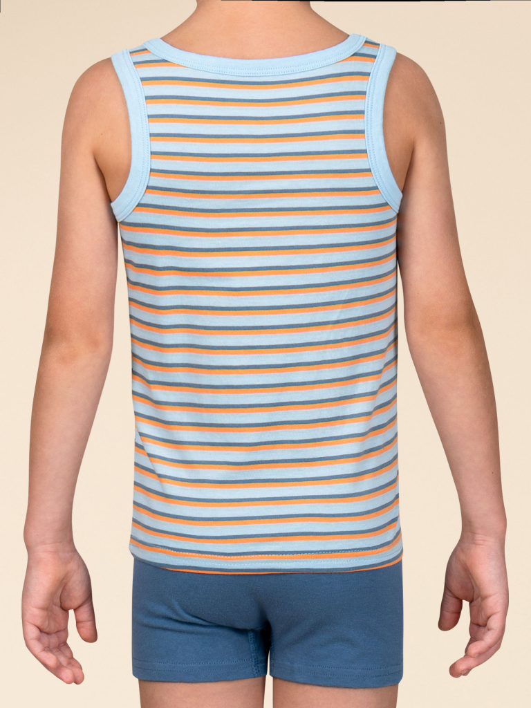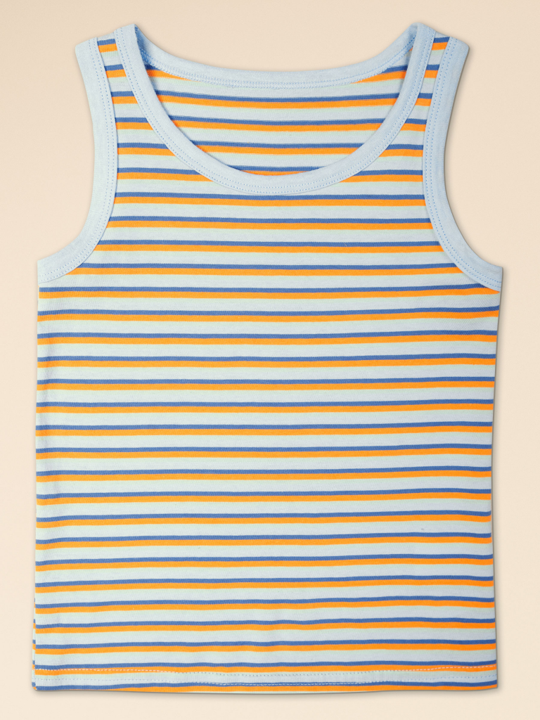 Если вы в поисках качественного, комфортного и стильного белья для своего ребёнка, обратите внимание на нашу майку из 100% хлопка для мальчика. Натуральный состав ткани обеспечивает изделию мягкость и воздухопроницаемость — кожа ребёнка дышит. Майка детская комфортно сидит по фигуре, её можно надевать под рубашку, джемпер, свитер. Горловина и проймы изделия отделаны пайпингом в тон — они хорошо держат форму, надолго сохраняют аккуратный внешний вид. Хлопковая майка в оранжево-голубую полоску лаконичного дизайна, неприхотлива в уходе. В линейке представлены майки детские следующих размеров: 1 (86): 2 (92): 3 (98): 4 (104): 5 (110): 6 (116): 7 (122): 8 (128): 9 (134): 10 (140): 11 (146). Нательная майка для мальчика подходит для повседневной носки, отдыха, а также для сна и дома — прекрасный выбор для вашего ребёнка! Изделие можно носить круглый год: летом, весной и осенью (демисезон), зимой. Майка детская для мальчиков — замечательный подарок сыну, внуку, брату на любой праздник. Выбирайте нужный размер по таблице размеров на фото. Цвет товара на экране вашего устройства может отличаться от цвета изделия вживую. Товар возврату и обмену не подлежит.