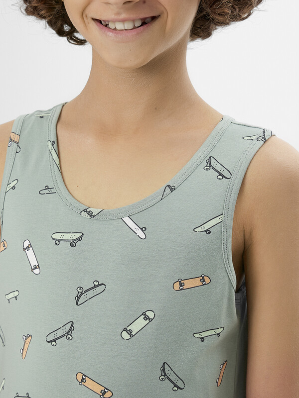 Эта удобная нижняя майка для мальчика с полуприлегающим силуэтом идеально подходит в качестве первого слоя одежды – ее можно носить под рубашку, водолазку или пижаму.
