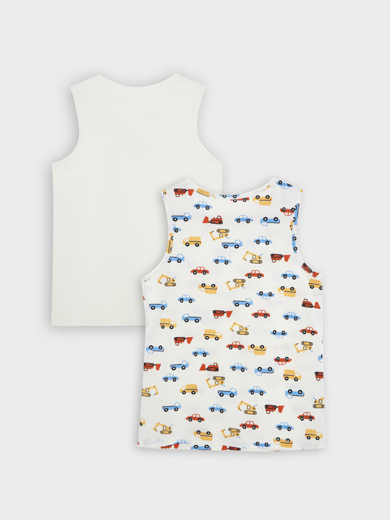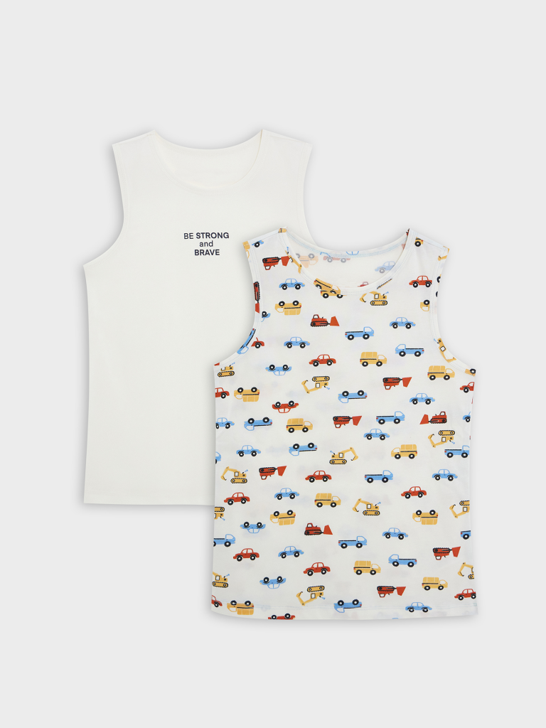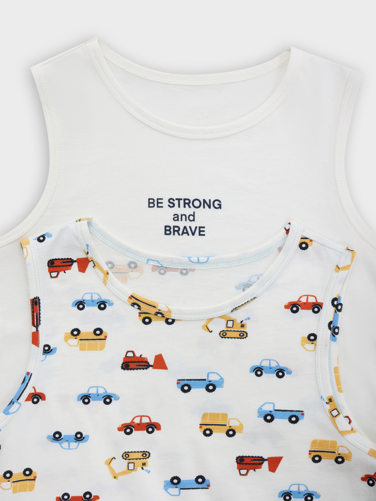 Набор из двух маек полуприлегающего силуэта из хлопковой трикотажной кулирки. Длина до середины бедер. Горловина круглая, окантована мягкой бейкой. Нижний срез обработан плоским швом. Комфортная классика для вашего мальчика!