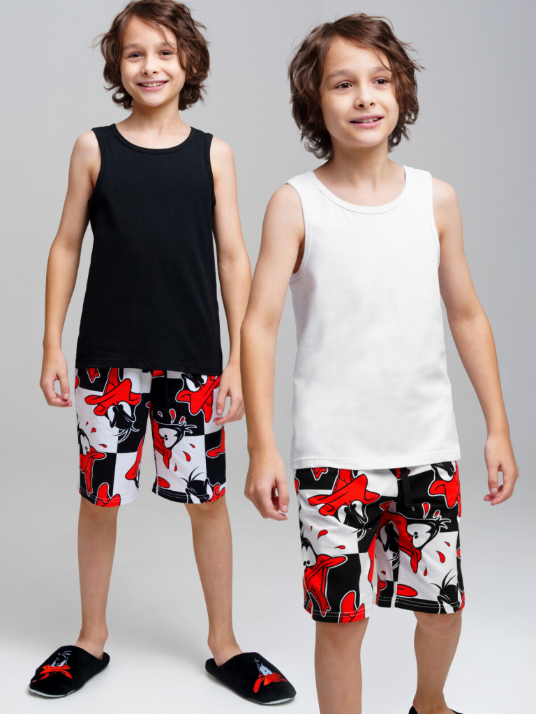 > Майка трикотажная для мальчиков, 2 шт в комплекте черный,белый