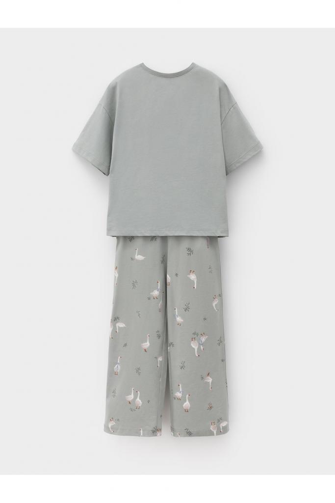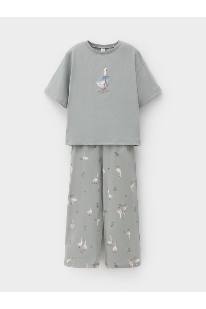 Трикотажная пижама из натурального хлопка для комфортного сна и отдыха. Футболка с короткими спущенными рукавами и прямые брюки с мягкой эластичной резинкой в поясе изготовлены из гладкого трикотажа супрем. Оригинальная набивка и принт выполнены из стойких текстильных гипоаллергенных красителей. Изделие сохраняет цвет и форму после многократных стирок. Все трикотажные полотна производятся в соответсвии с нормами швейцарского сертификата ЭкоТекс.