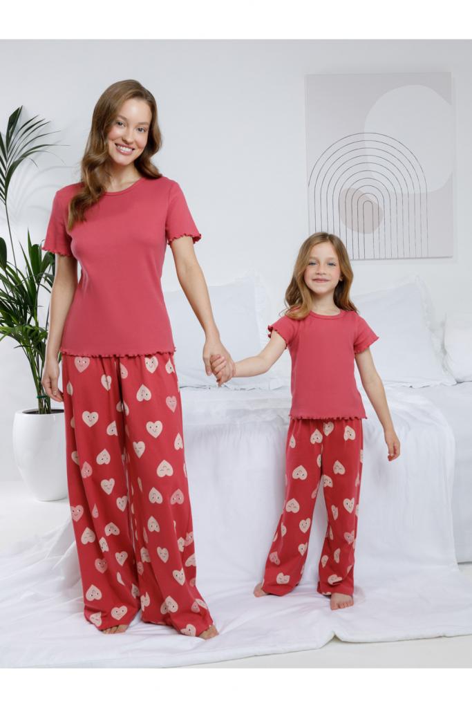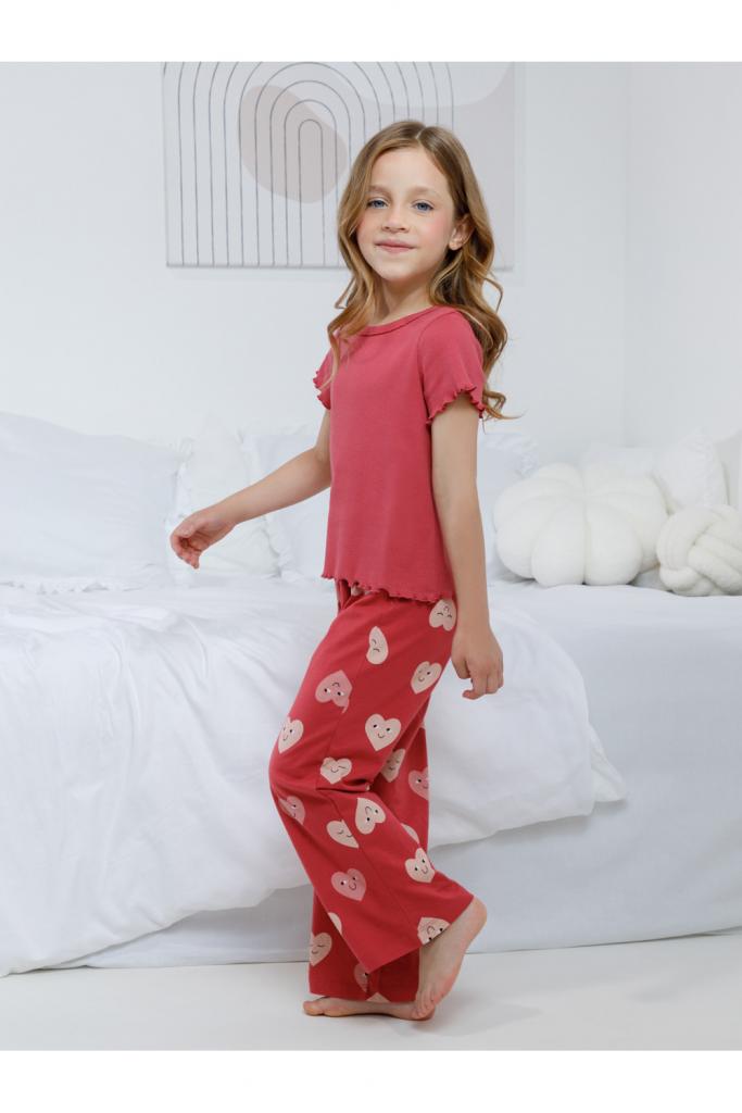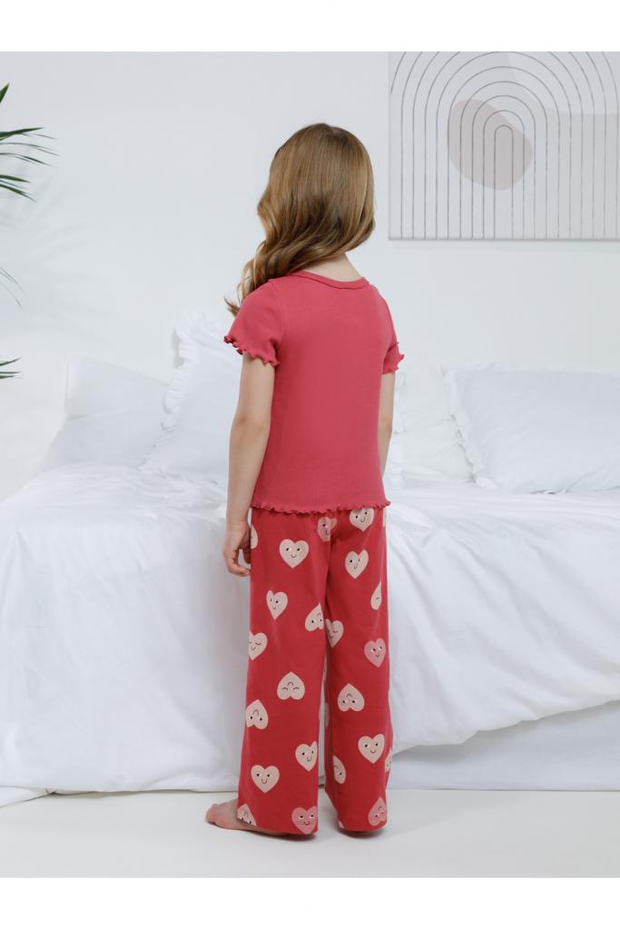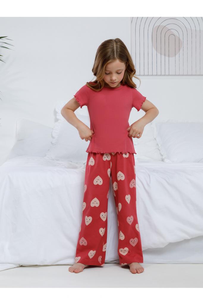 Трикотажная пижама из натурального хлопка для комфортного сна и отдыха. Футболка с короткими втачными рукавами изготовлена из эластичного материала в рубчик. Прямые брюки с мягкой эластичной резинкой в поясе изготовлены из гладкого трикотажа супрем. Оригинальная набивка выполнена из стойких текстильных гипоаллергенных красителей. Изделие сохраняет цвет и форму после многократных стирок. Все трикотажные полотна производятся в соответствии с нормами швейцарского сертификата ЭкоТекс.