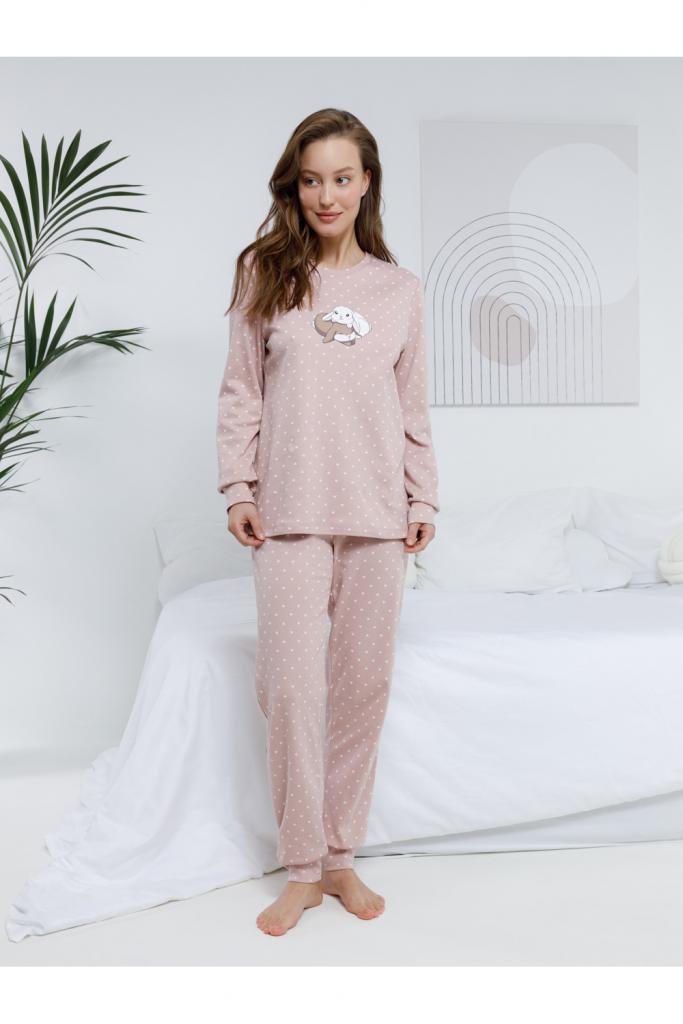 Комплект для комфортного сна и отдыха из трикотажного полотна с набивным рисунком и принтом. Джемпер с длинными втачными рукавами и брюки с мягкой эластичной резинкой в поясе, которые удобно садятся по фигуре. Гладкий материал приятен к телу, не теряет форму и позволяет коже дышать. На рукавах и по низу брюк мягкие манжеты.