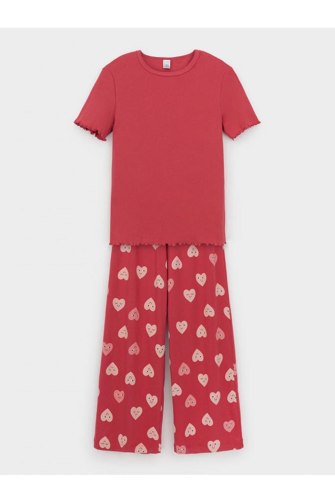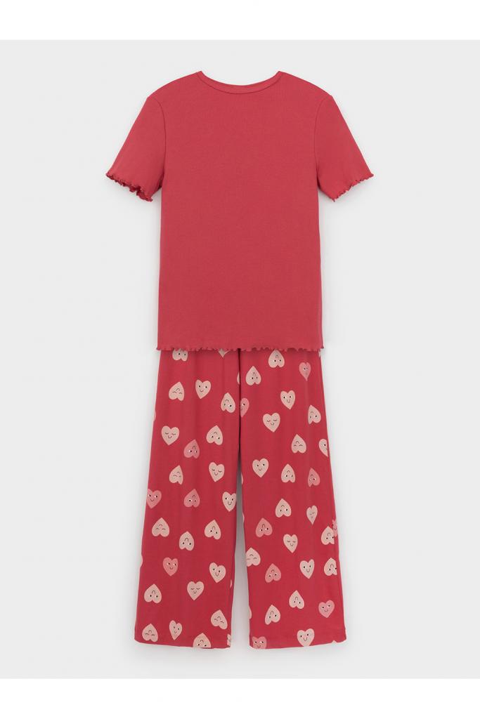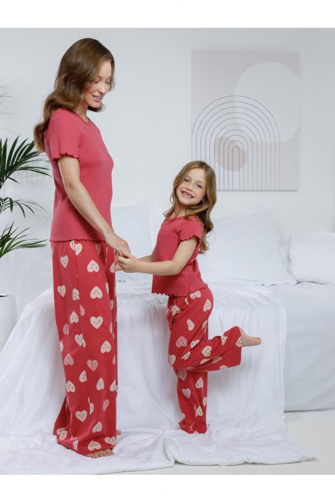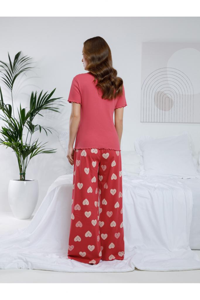 Комплект из натурального хлопка для комфортного сна и отдыха. Футболка с короткими втачными рукавами изготовлена из мягкого материала в рубчик. Прямые брюки выполнены из гладкого трикотажа супрем и благодаря эластичной резинке в поясе удобно садятся по фигуре. Лёгкий материал приятен к телу, не теряет форму и позволяет коже дышать.