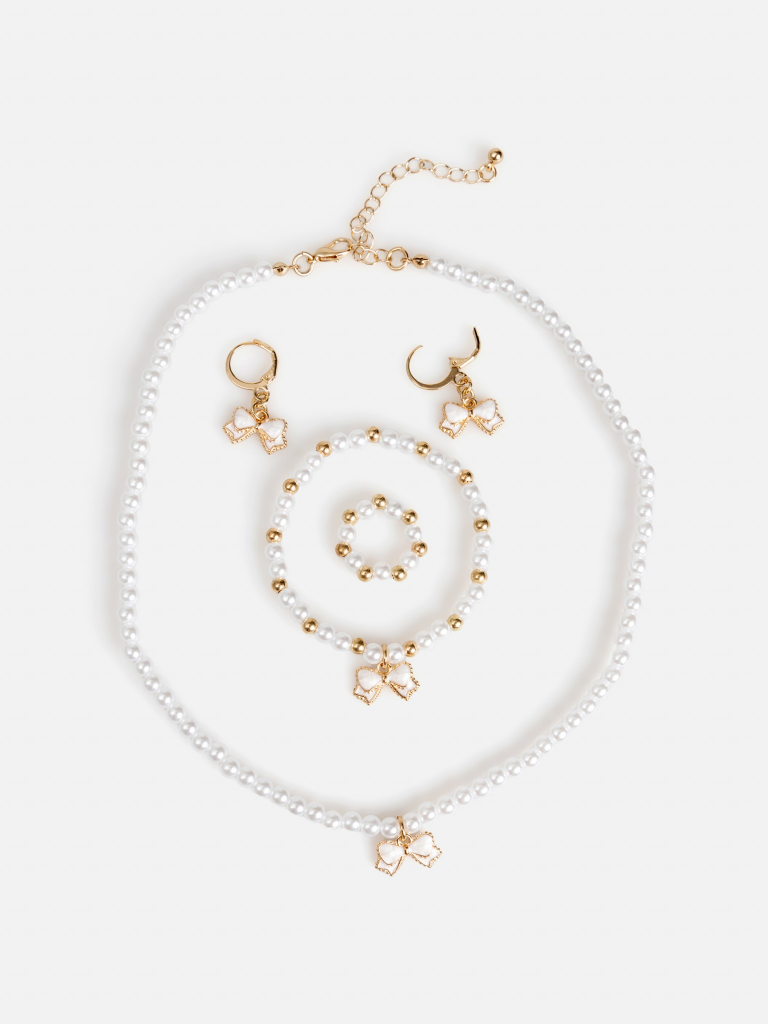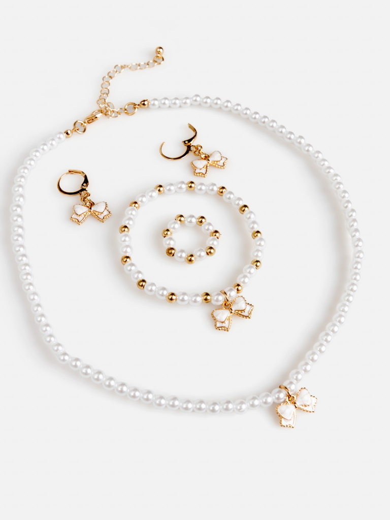Набор (бусы+браслет+кольцо+серьги) дет. Stormi молочный