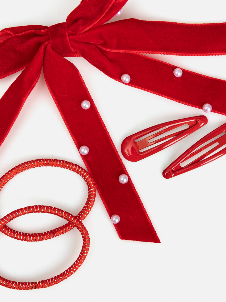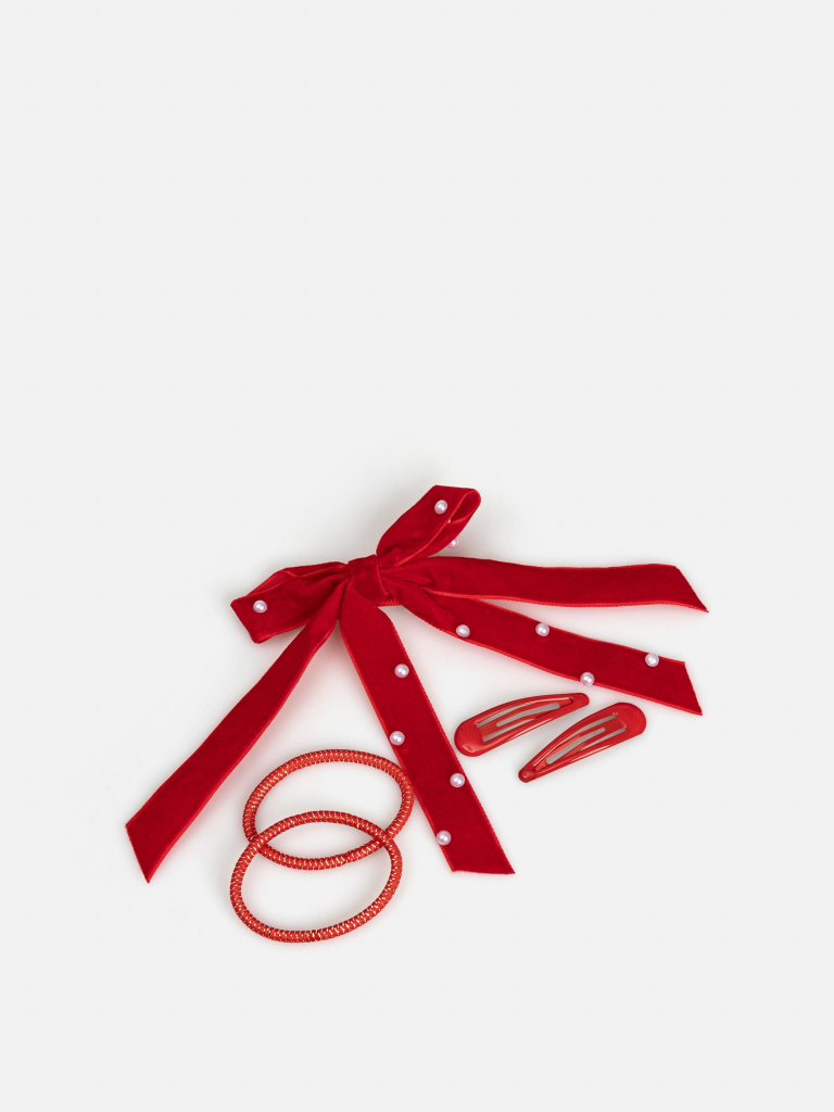 Набор из 2 резинок и 3 заколок для волос дет. Velvan красный