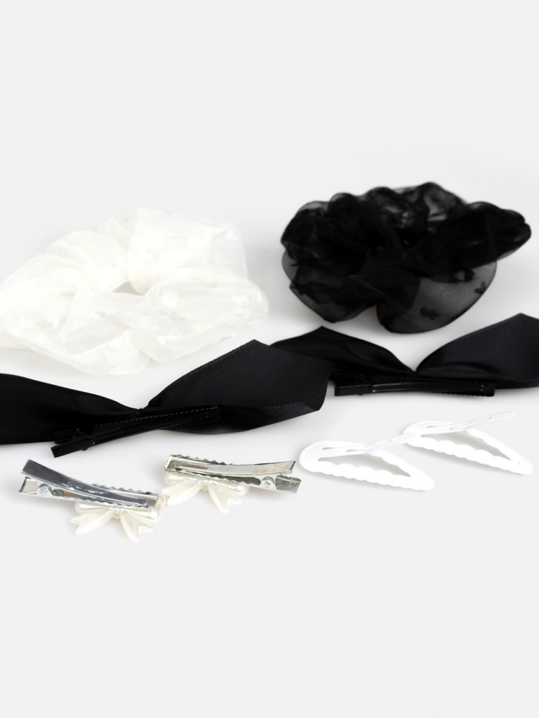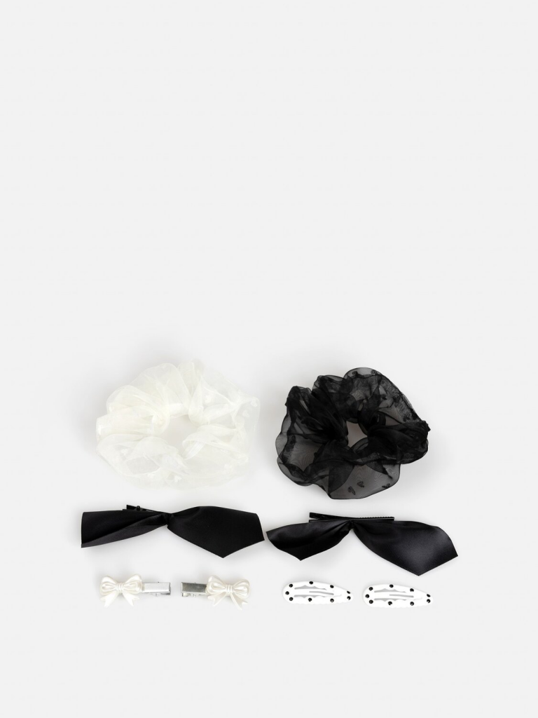 Набор из 2 резинок и 6 заколок для волос дет. Laila черно-белый