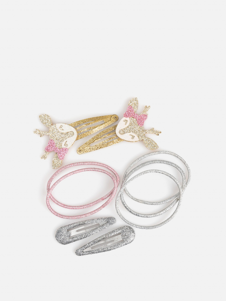 Набор из 5 резинок и 4 заколок для волос дет. Dirsy разноцветный
