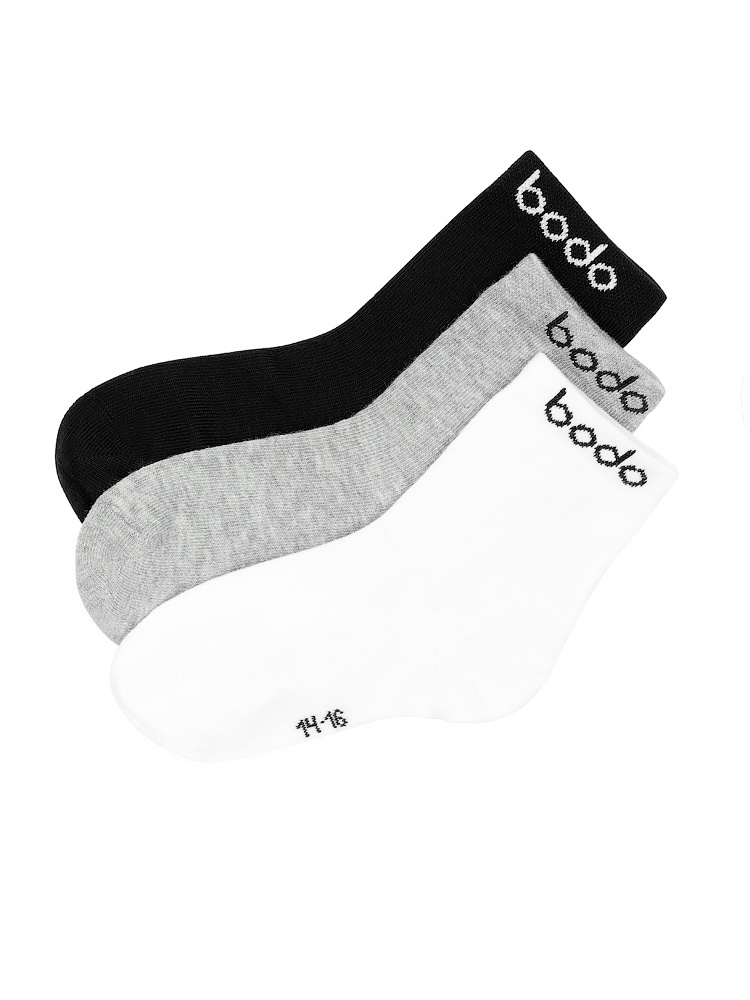 Комплект из 3 пар детских носков. Трикотаж с большим содержанием хлопка. Благодаря добавлению эластана носки более эластичны, отлично держат форму после стирок и не дают усадки. Состав: 74% хлопок 4% эластан 1% полипропилен 21% ПА. Унисекс