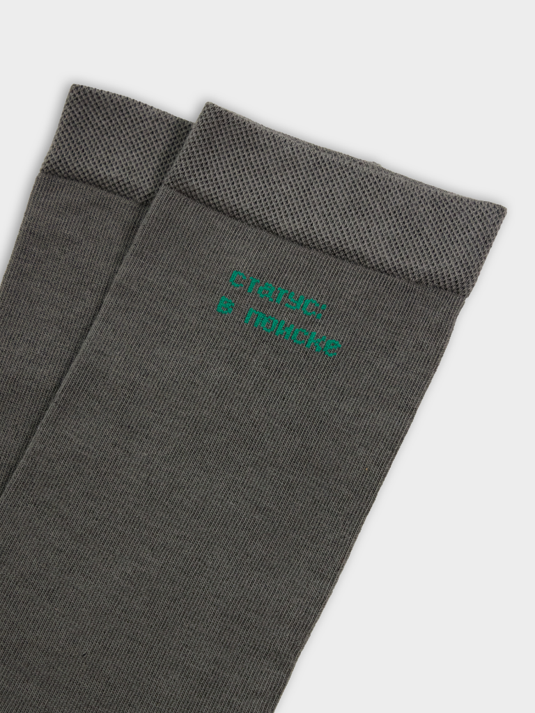 рис.3033 Мужской носок классический, высокий, с рисунком в виде надписи "СТАТУС В ПОИСКЕ".