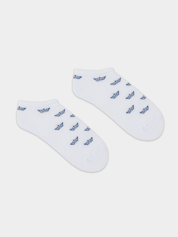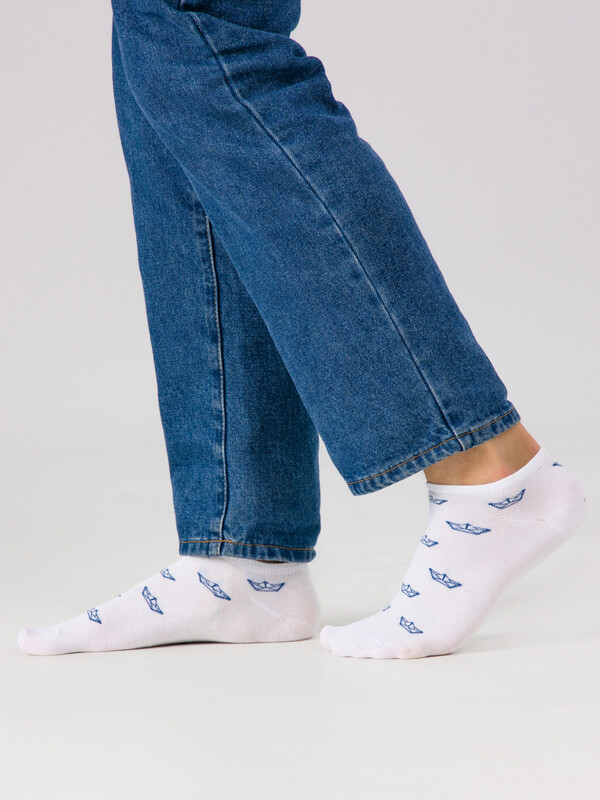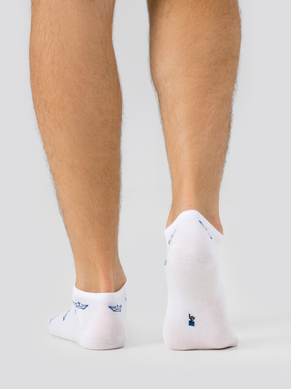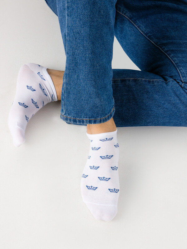 Нежные синие оригами-кораблики на белом фоне добавляют образу легкость и индивидуальность. Укороченная длина делает эти носки универсальными – они останутся незаметными в обуви, но добавят изюминку вашему стилю. Купить мужские носки с рисунком оригами – значит выбрать не просто аксессуар, а способ выразить свою индивидуальность.