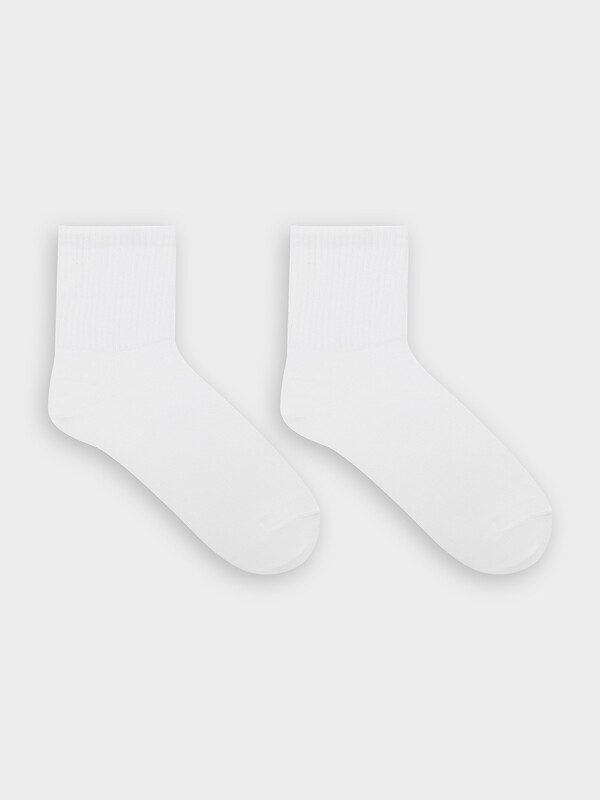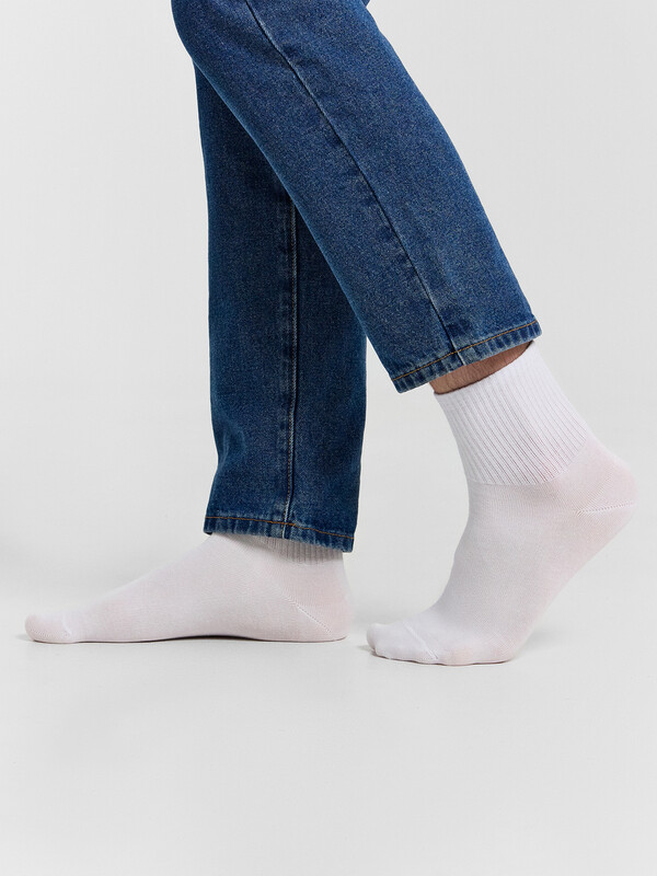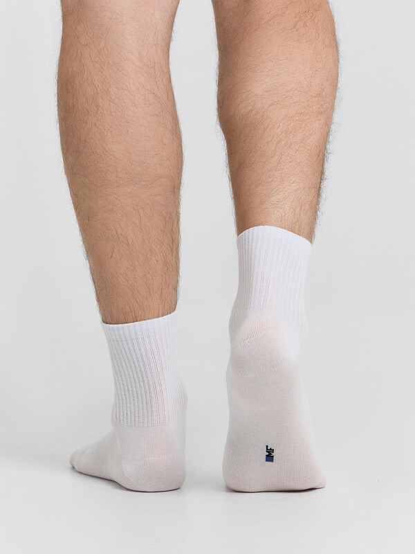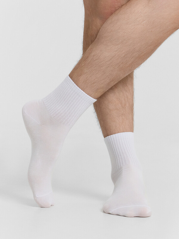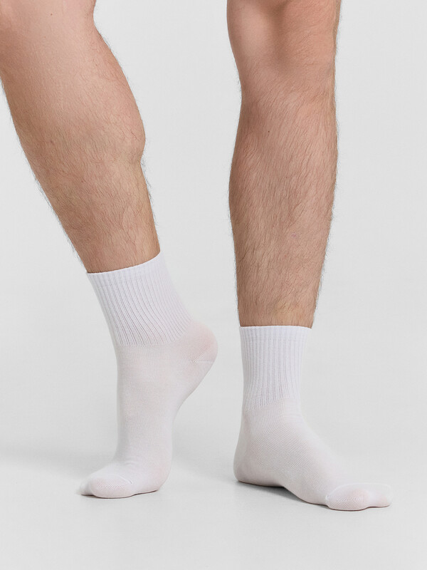 Рис.3084 Мужской носок однотонный средней длины и резинкой на поголенке.