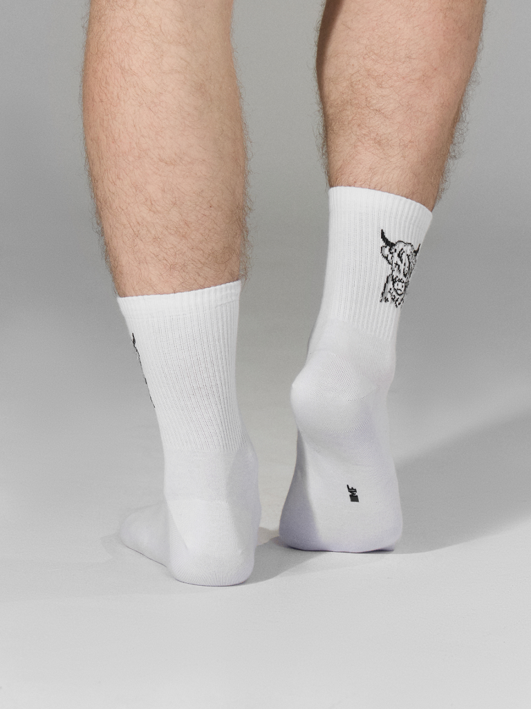Рис.3086 Мужские носки, средней длины с резинкой на паголенке и рисунков в виде зубра.