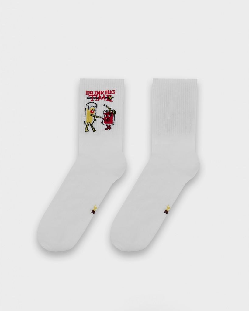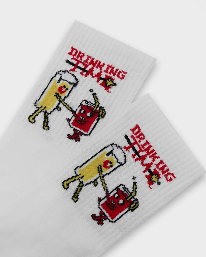 рис.3044 Мужской носок с высоким плотным бортом и рисунком в виде надписи "Drink TIME".