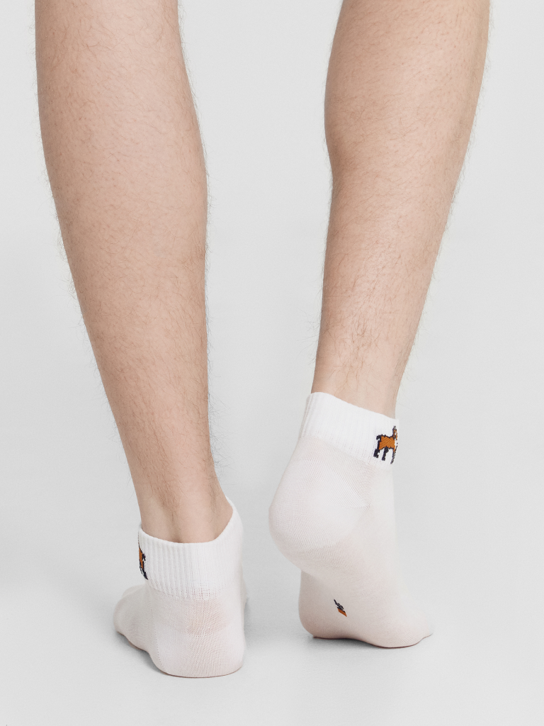 рис.3093 Укороченные мужские носки с рисунком в виде пса на бортике.