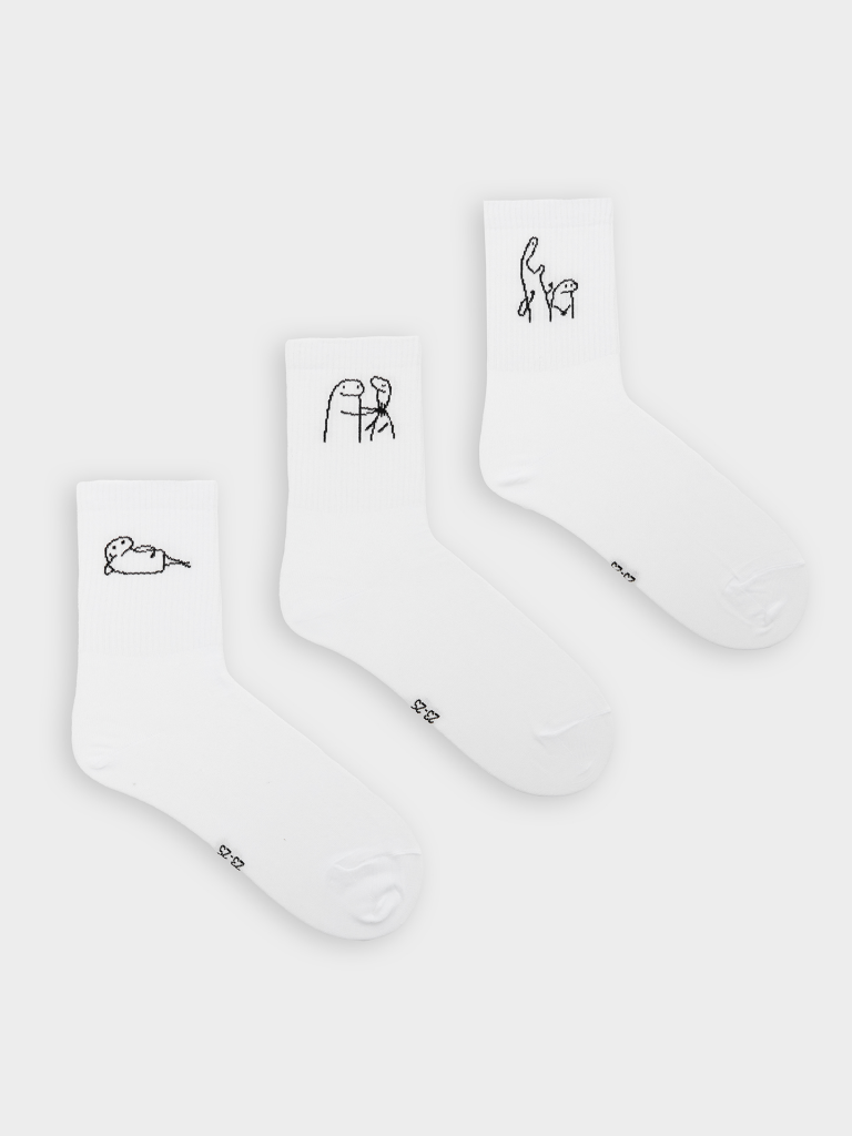 рис.3227 Мультипак из трех пар Унисекс носков, высоких с плотным бортом и рисунком в виде мемов на паголенке.