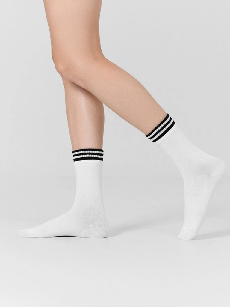 рис.3330 Женские носки высокие с многослойным цветным бортом с рисунком в виде полосок.