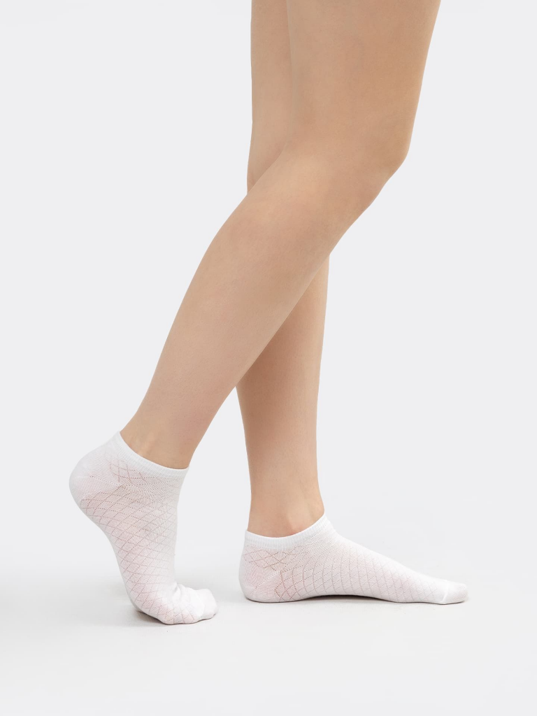 Комфортные носки женские укороченные с Y-образной пяткой и рисунком в виде ромбов. Отличный вариант для ежедневной носки. Изготовлены из высококачественного хлопка. Мягкие и удобные, подходят для любого времени года, но лучше всего носить такой формат носков в весенне-летний период. Хорошо садятся по ноге, плотно облегают, не натирают и не вызывают аллергию. Есть однотонные модели и варианты с интересными рисунками и принтами. Носки очень удобные, так как они не спадают и не сползают. Их можно носить с любым видом обуви. Короткие носки созданы для тех, кто ценит комфорт, качество и красоту. Они будут радовать вас каждый день, делая вашу жизнь комфортнее и приятнее. Рекомендуем эти стильные женские носочки!