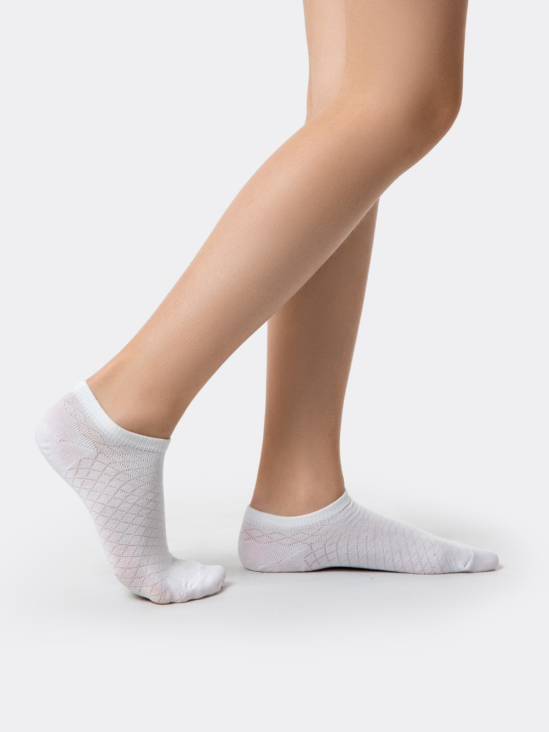 Комфортные носки женские укороченные с рисунком в виде мелких ромбов. Отличный вариант для ежедневной носки. Изготовлены из высококачественного хлопка. Мягкие и удобные, подходят для любого времени года, но лучше всего носить такой формат носков в весенне-летний период. Хорошо садятся по ноге, плотно облегают, не натирают и не вызывают аллергию. Есть однотонные модели и варианты с интересными рисунками и принтами. Носки очень удобные, так как они не спадают и не сползают. Их можно носить с любым видом обуви. Короткие носки созданы для тех, кто ценит комфорт, качество и красоту. Они будут радовать вас каждый день, делая вашу жизнь комфортнее и приятнее. Рекомендуем эти стильные женские носочки!
