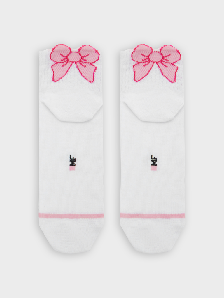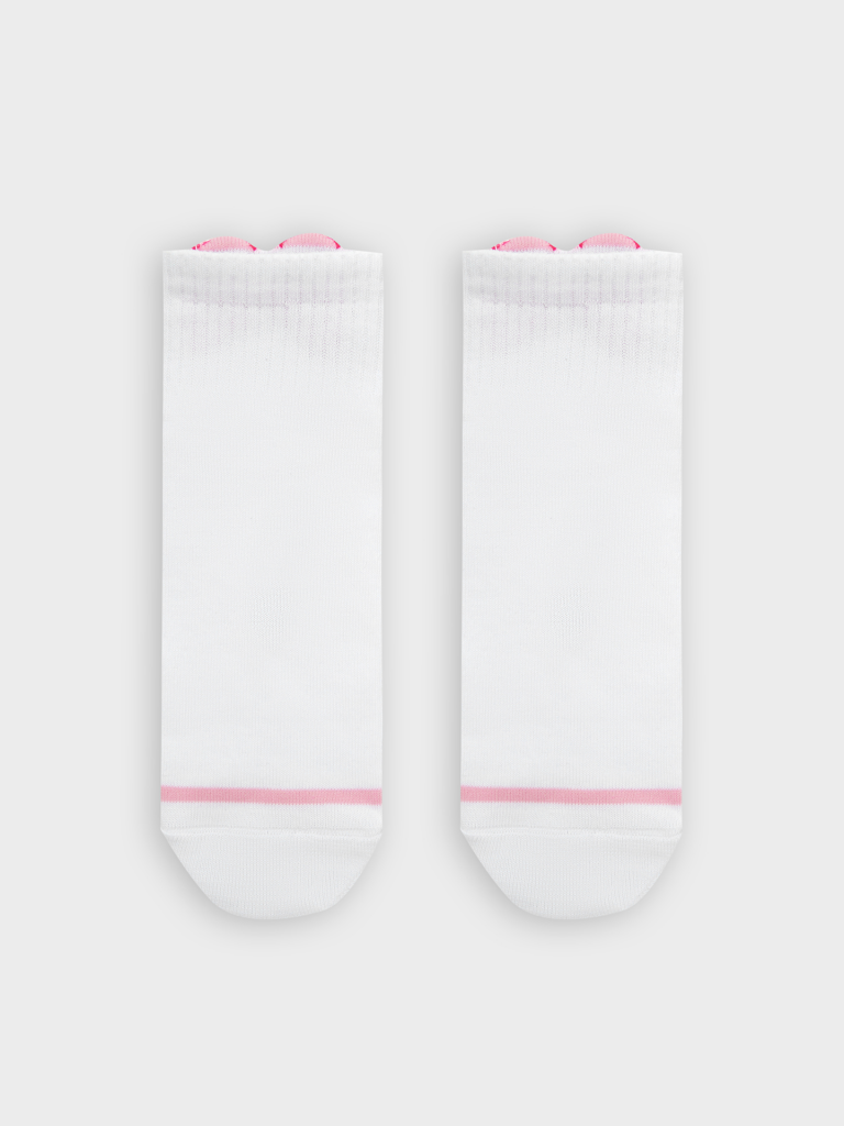 рис.3193 Гладкий детский носок с резинкой, средней высоты и рисунком в виде бантика.