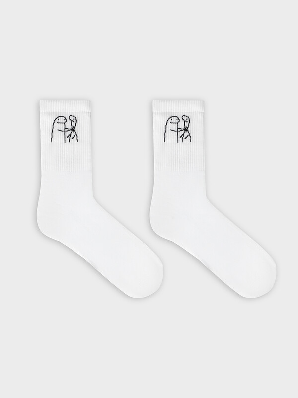 рис.3229 Носок высокий с плотным бортом и рисунком в виде мема.