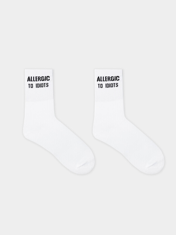 рис.3241 Носок высокий с плотным бортом и рисунком в виде надписи "ALLERGIC to idiots"..