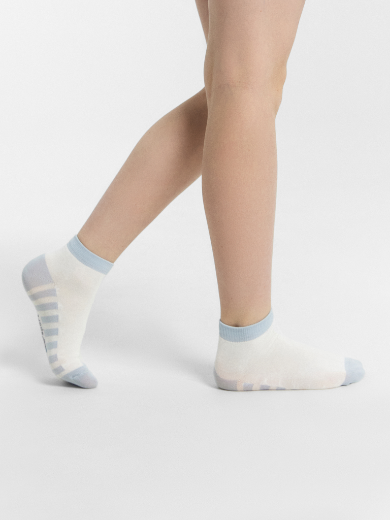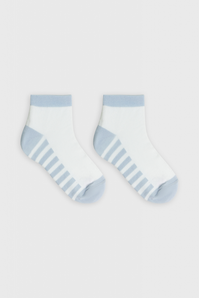 Носки короткие детские из высококачественного хлопка с принтом полосок на следу. Натуральные волокна отлично пропускают воздух и впитывают влагу, дарят ощущение комфорта в течение дня. Благодаря небольшому количеству эластана в составе, удобно сидят на ножке и не сползают, хорошо тянутся и легко надеваются. Пятка и мысок дополнительно укреплены для защиты от протирания. Резинка мягко, но надежно удерживает носки, не оставляя на коже следов. В ассортименте Mark Formelle можно выбрать самые разнообразные дизайны и расцветки: однотонные зеленые, желтые, синие или серые детские носки подойдут и для мальчика, и для девочек, найдутся модели в полоску, с оригинальными авторскими рисунками, орнаментами, а также базовые детские носки белые и черные. Маленьким модникам они точно понравятся!