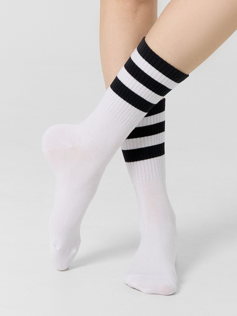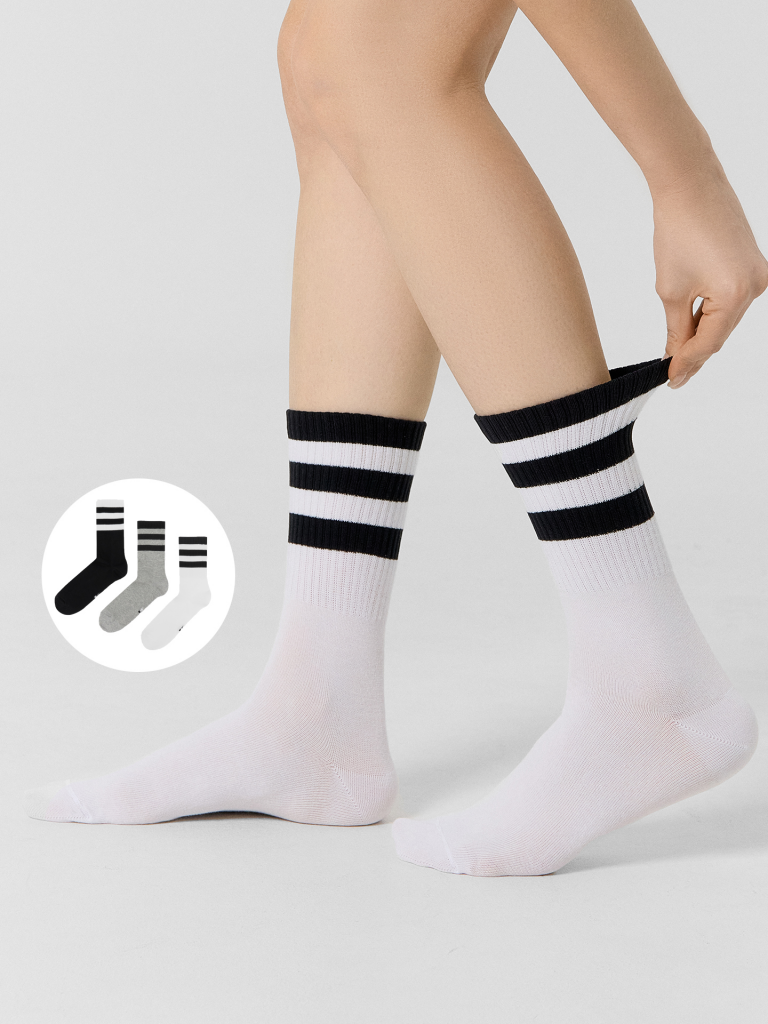 Этот набор из трех пар высоких женских носков – идеальное сочетание комфорта, качества и стильного дизайна. Яркий узор в виде разноцветных полосок добавляет оригинальности и позволяет легко вписать носки в любой образ. Изделия выполнены из натурального хлопка с добавлением эластичных волокон, что обеспечивает мягкость, отличную воздухопроницаемость и удобную посадку. Носки приятно прилегают к коже, позволяя ногам дышать и предотвращая перегрев. Эластичный материал гарантирует надежную фиксацию, не сдавливает стопу и не оставляет следов, а усиленные зоны в области пятки и мыска повышают долговечность, обеспечивая устойчивость к износу. Практичный и стильный аксессуар, который подарит комфорт на каждый день и добавит яркий акцент в ваш гардероб. Отличный выбор для тех, кто ценит качество и оригинальные детали!