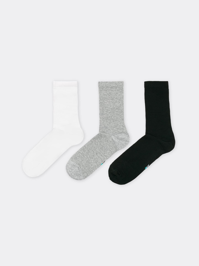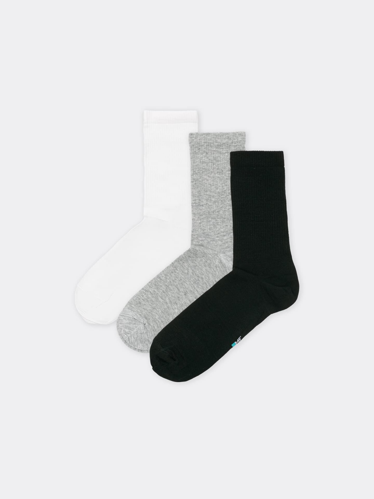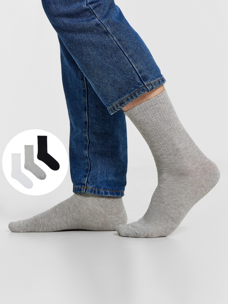 Мультипак их трех пар классических высоких мужских носков с рисунком в виде поперечных полосок. Плотные, качественные и комфортные носки из высококачественного хлопка, который отлично впитывает влагу, пропускает воздух и подходит даже для самой чувствительной кожи. Удобная резинка и плоские швы на мыске носка создают особый комфорт. Прекрасно переносят множественные стирки, сохраняют форму и цвет, устойчивы к изнашиванию. Идеально облегают ногу. Носки мужские от Mark Formelle подходят для ежедневной носки, отлично сочетаются с вещами в гардеробе, дополнят любой образ: классический, спортивный, деловой. Такой набор мужских носков удачный и практичный подарок любимому мужчине, папе, парню или просто другу на любой праздник. Купить носки мужские недорого можно прямо у нас на сайте или в магазине. Красиво, стильно и удобно. Рекомендуем!