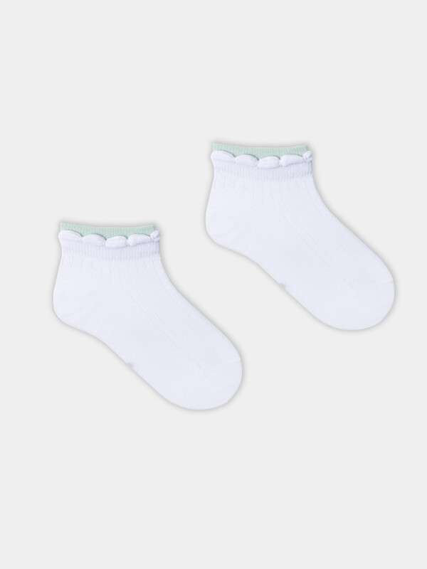 рис.3177 Носки детские укороченные с цветным бортиком и рисунком в виде лапшы выполненным перекидным переплетением.