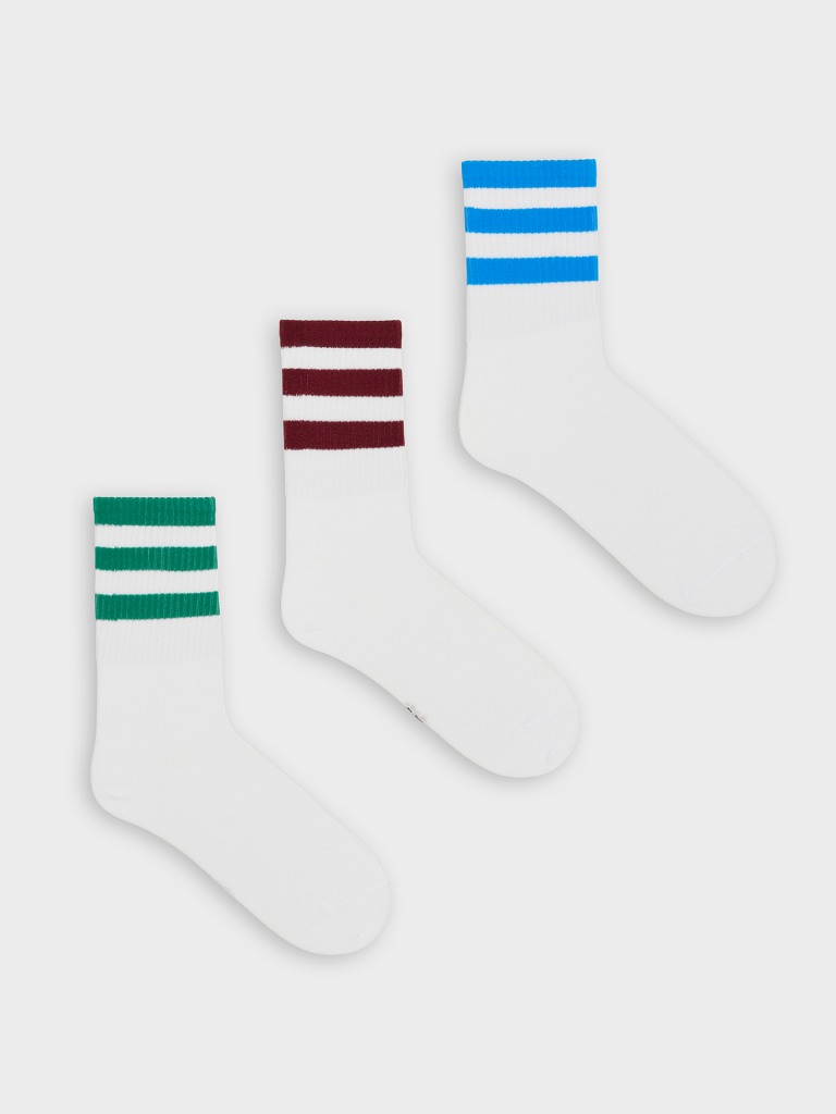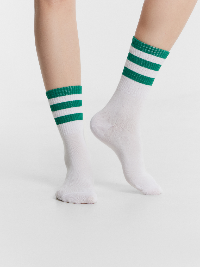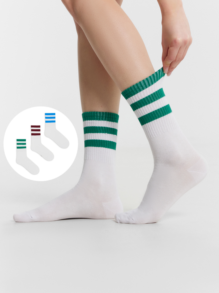 Этот набор из трех пар высоких женских носков – идеальное сочетание комфорта, качества и стильного дизайна. Яркий узор в виде разноцветных полосок добавляет оригинальности и позволяет легко вписать носки в любой образ. Изделия выполнены из натурального хлопка с добавлением эластичных волокон, что обеспечивает мягкость, отличную воздухопроницаемость и удобную посадку. Носки приятно прилегают к коже, позволяя ногам дышать и предотвращая перегрев. Эластичный материал гарантирует надежную фиксацию, не сдавливает стопу и не оставляет следов, а усиленные зоны в области пятки и мыска повышают долговечность, обеспечивая устойчивость к износу. Практичный и стильный аксессуар, который подарит комфорт на каждый день и добавит яркий акцент в ваш гардероб. Отличный выбор для тех, кто ценит качество и оригинальные детали!