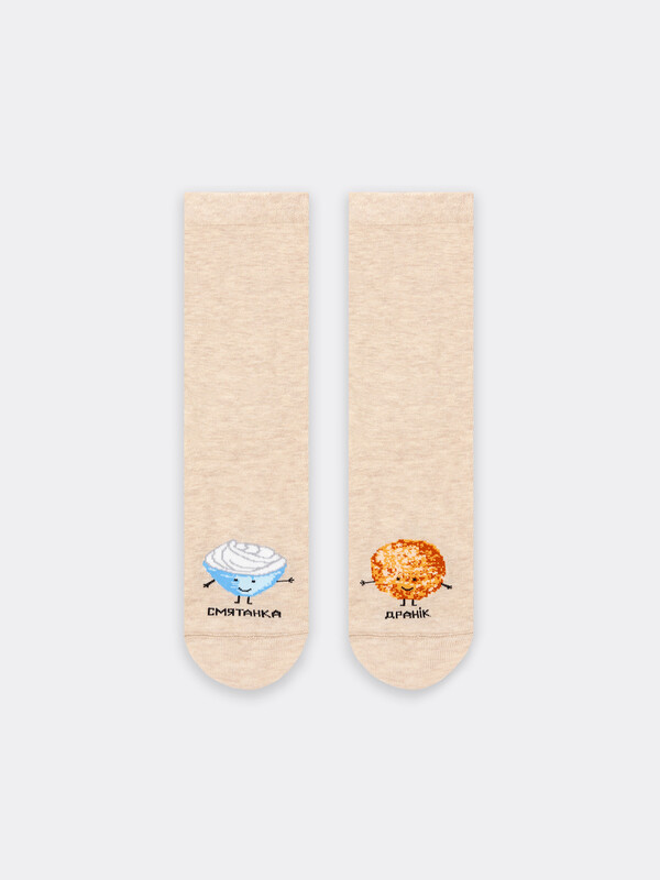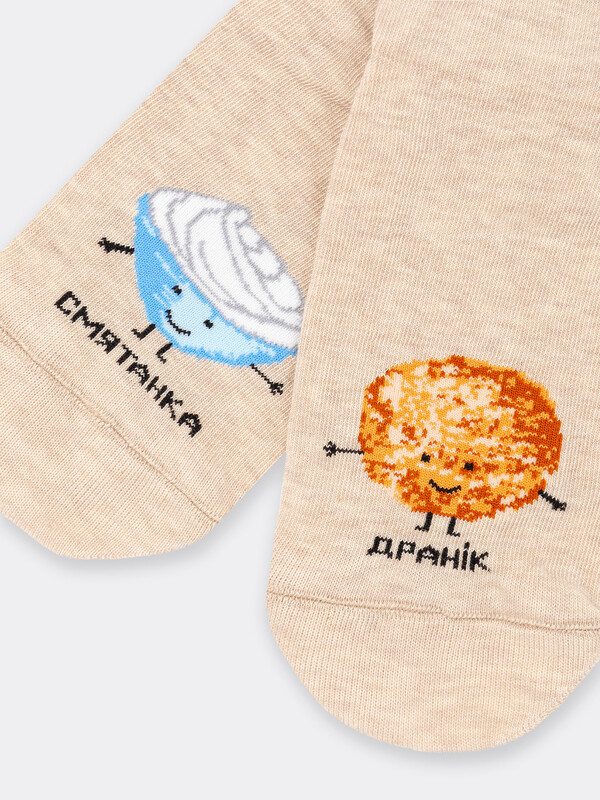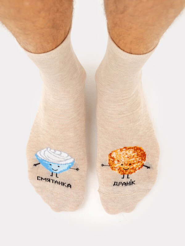 Высокие классические носки унисекс для нее и для него с рисунком на верхней части следа в виде драника и сметанки. Выполнены из высококачественного гребенного хлопка - тонкого, прочного и эластичного. Натуральные волокна отлично пропускают воздух и впитывают влагу, обеспечивают ощущение комфорта в течение дня. Благодаря небольшому количеству эластана в составе, носочки хорошо облегают и сохраняют форму, практичны и долговечны. Пятка и мысок дополнительно усилены для защиты от протирания при активном движении. Резинка мягко, но надежно удерживает унисекс носки, не передавливая ногу и не оставляя на коже следов. Нежные, достаточно теплые и мягкие, создадут атмосферу тепла и уюта. Порадуйте себя и своих близких любимыми носочками от Mark Formelle!